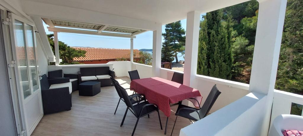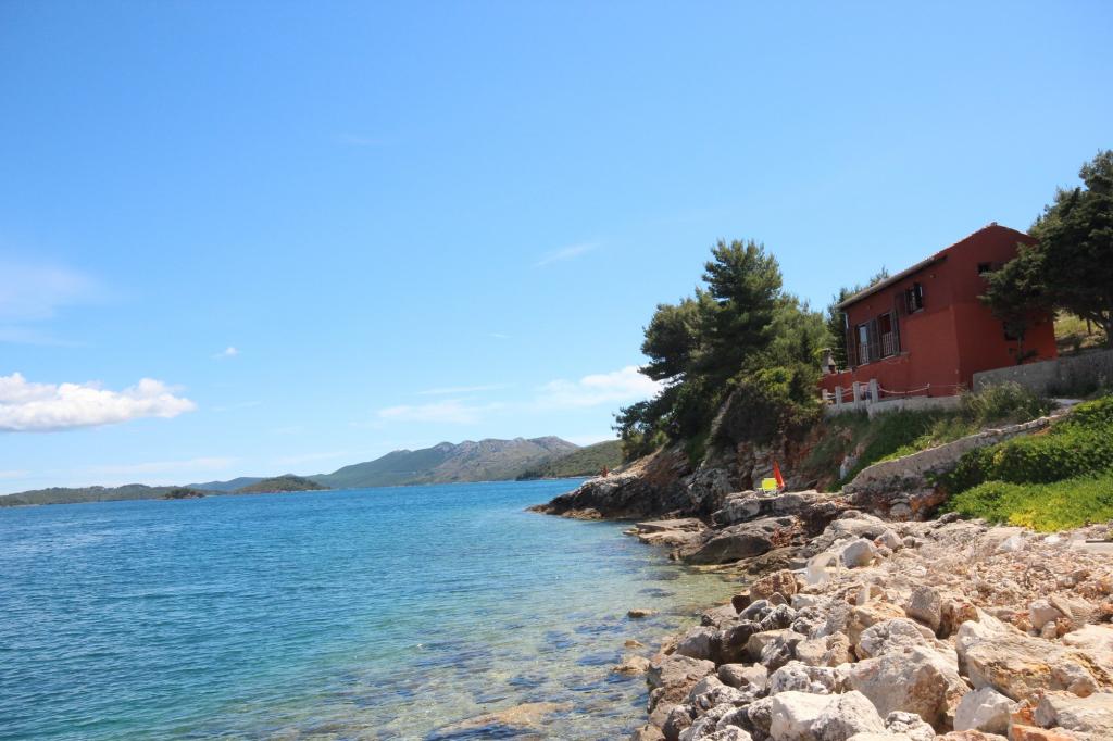 Apartments Kolić in Savar on Dugi otok are located in the immediate vicinity of the sea. Savar is an ideal place for a relaxing holiday with family or friends. We offer accommodation in a total of 3 apartments with a terrace and a beautiful view of the sea. In a separate red house there is a studio apartment for 2 people, equipped for a pleasant stay. The other 2 apartments are located in the white house next door. One on the first floor and the other in the attic. both apartments have two bedrooms, a kitchen with a dining room and a bathroom. Each apartment in the white house can comfortably accommodate 4 to 5 people, and if necessary, we can also accommodate 6 people. The special feature of our apartments is that they are right next to the sea and the beach is right in front of the house! The yard covers over 1000 m2 and is surrounded by pine trees, which give us thick shade. On hot, summer days, our guests rest on a hammock between two pine trees, and they can also enjoy it on the deck chairs by the sea or in the shade of the pine trees.
