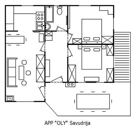 Modernly equipped apartments in a private house surrounded by a garden full of greenery and a large private covered parking lot. Apartment OLY-1 is located on the first floor, and apartment OLY-2 is on the ground floor. There are protective nets on the windows, which protect against insects. The house is only 300 meters away from the sea and the beach. The center of the village with shops, post office, bank, restaurants, pizzerias... is only a 10-minute walk away. Rest and spend a pleasant stay in the peaceful surroundings of the OLY apartments.