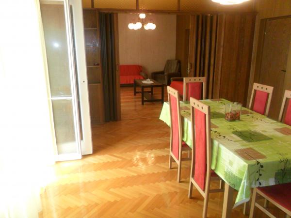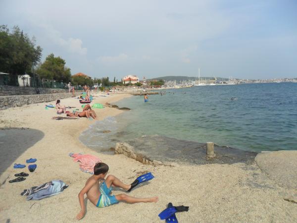 Slightly north of Trogir lies Seget, famous for its beautiful beaches. These beaches are very nice and neat, and the pebble is small, actually ideal. Sun loungers and parasols are available for rent. There is also a solid choice of catering facilities. There are organized boat excursions and many sea-related attractions. There are also sports grounds not far from the apartments (tennis, basketball, football, mini golf, trim tracks etc.). Apartment Filip is located in the fishing village of Seget Donji near Trogir. The apartment consists of three double bedrooms, living room with two extra beds, dining room, kitchen, two bathrooms, large balcony, terrace, barbecue, free internet, coffee maker, toaster, iron and ironing board, summer trolley for Child, parking lot. The apartment is ideal for staying with two families or groups of people. Distance from the sea and beach is only 60 meters. Each of our guests has a welcome gift. Welcome!