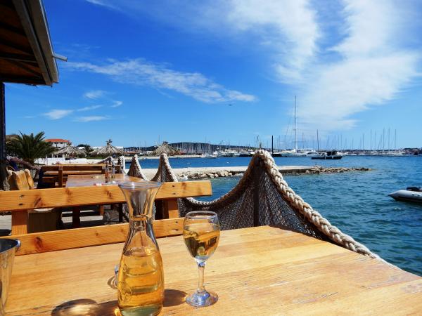 Apartments Infinitas are situated in one of the most beautiful parts of Dalmatia and only 2 km from the historic town of TROGIR. Air-conditioned apartments are located in the middle of Donji Seget, only 150 meters from a fine gravel beach. WiFi is available for all guests free of charge. Each apartment has its own private access and is equipped with a flat-screen TV. Toiletries are free of charge for guests. All guests have access to a beautiful garden with barbecue and deck chairs. It is a small comfortable oasis where guests can relax and relax with a beautiful view of the sea and the mountains. Other activities such as cycling, sailing or motor yacht riding, visits to the nearby islands or fishing, or just relaxing with a glass of wine in the garden, are possible at any time.