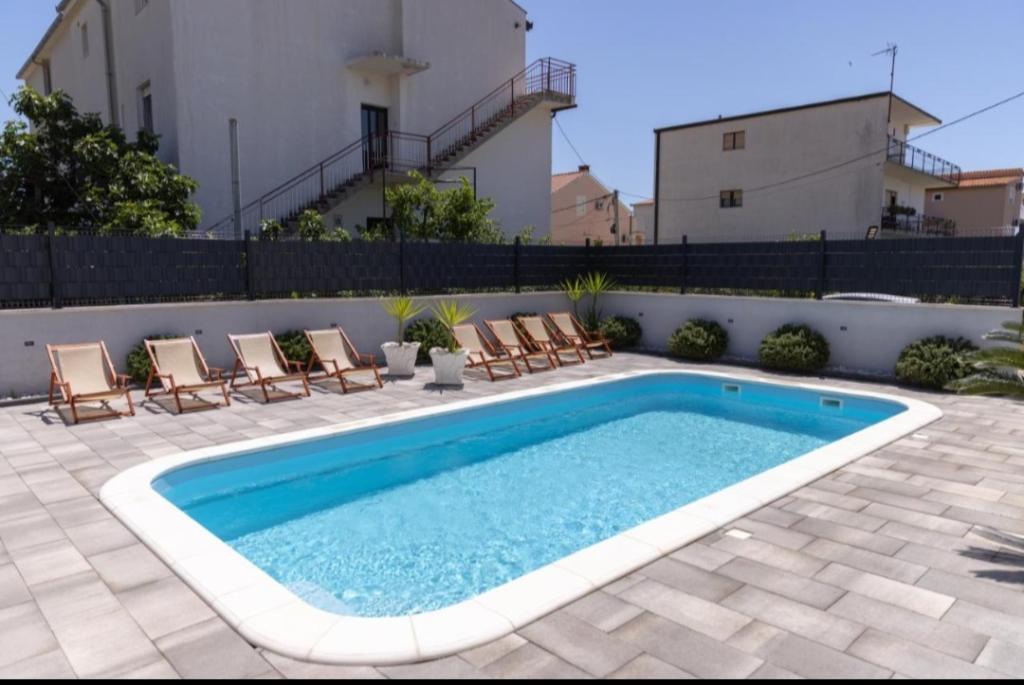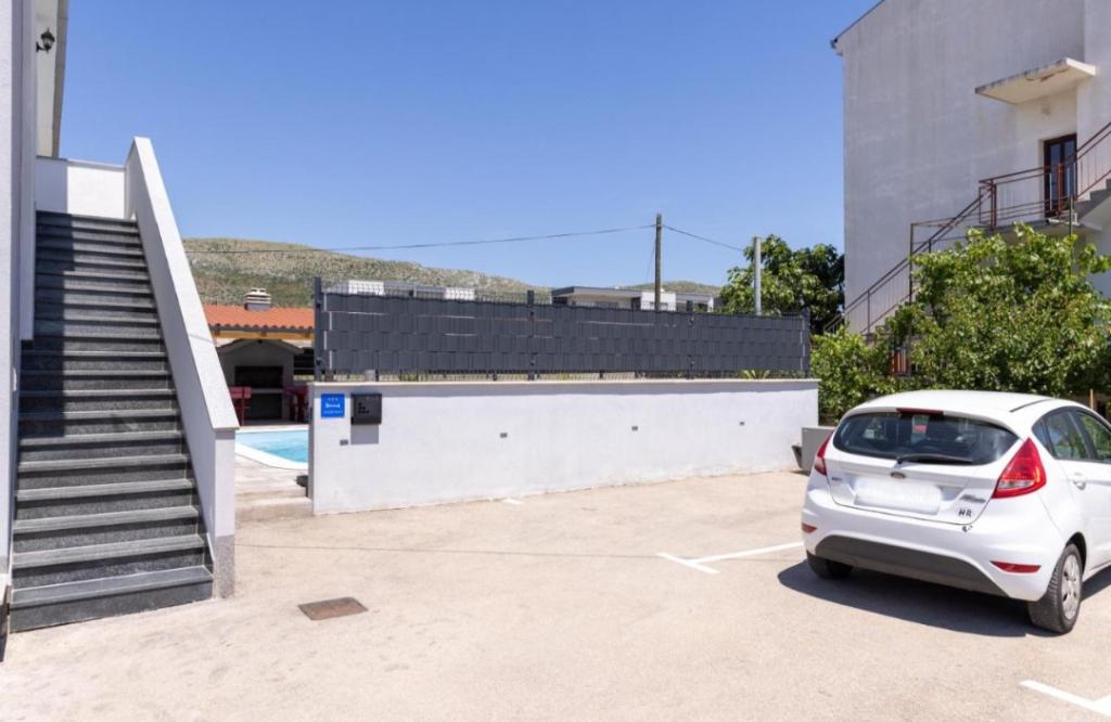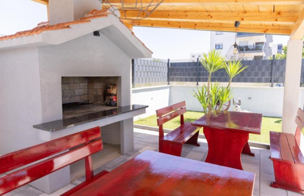 Newly furnished Villa in Seget Donji. Contains 2 apartments of 65 m2 each. Each apartment has one bathroom, two bedrooms with double beds. Each apartment has a spacious living room. The villa has a garden of 168 square meters, a swimming pool of 30 square meters, an outdoor grill, deckchairs for resting, fire polo goals for the pool. Both apartments have a view of the pool and the sea. Marina Baotić is 100 meters away. The shop Tommy is 50 meters away, inside which there is a shop selling fresh bread, pastries and fresh meat. Restaurant Barba is 50 meters away, as well as Caffe Bar and Pharmacy. The villa is located on the border of Trogir and Seget Donjeg.