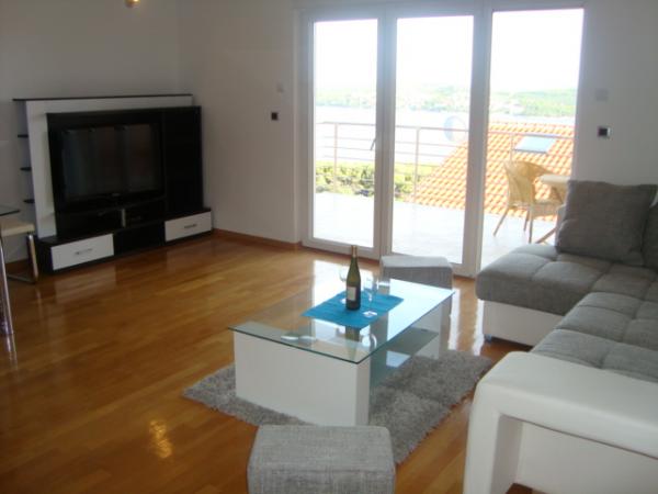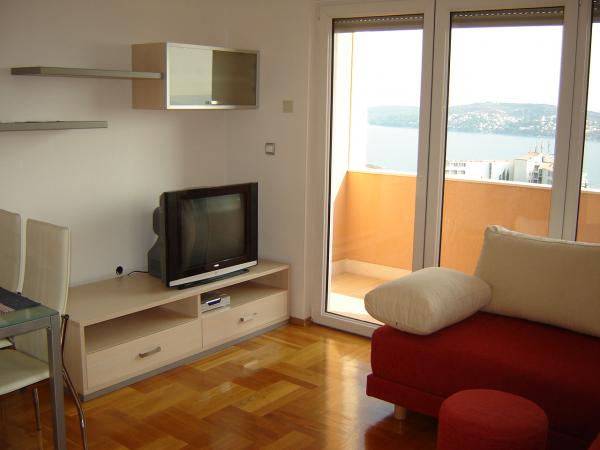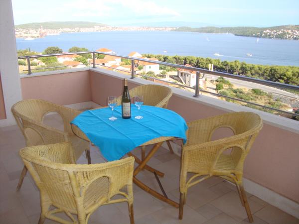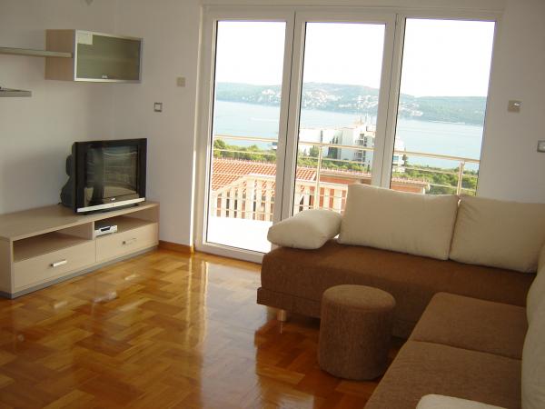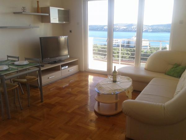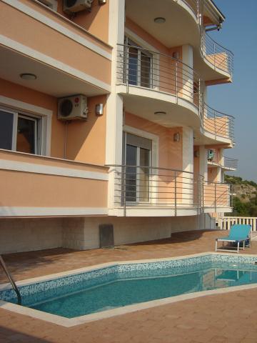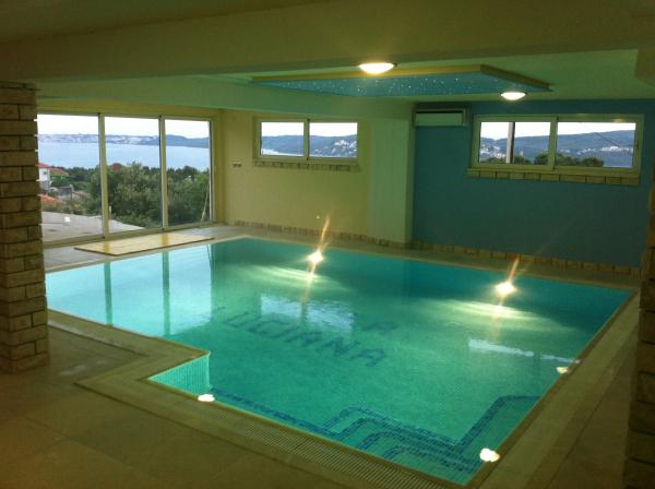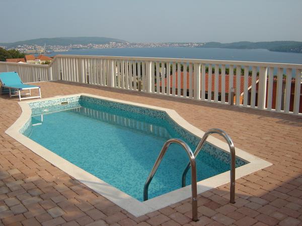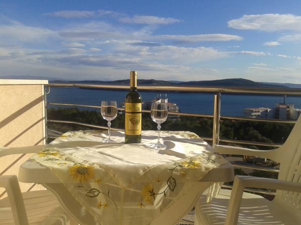 Newly built apartments, fully furnished with a beautiful view of the sea and islands. The building has 14 apartments, outdoor and indoor swimming pool, a restaurant for breakfast, reception, cafe and others. We are located 400 m from the beach. Nearby are sports facilities: tennis, beach volleyball, jet skiing, sailing, horseback riding, etc... (200-300m). The bus station is 150m, 400m local to ship. Marina for boats is 1, 5 km and airport 5km. Plitvice Lakes National Park are 45 km away, Trogir Unesco 1, 5 km, Diocletian's Split 25 km.
