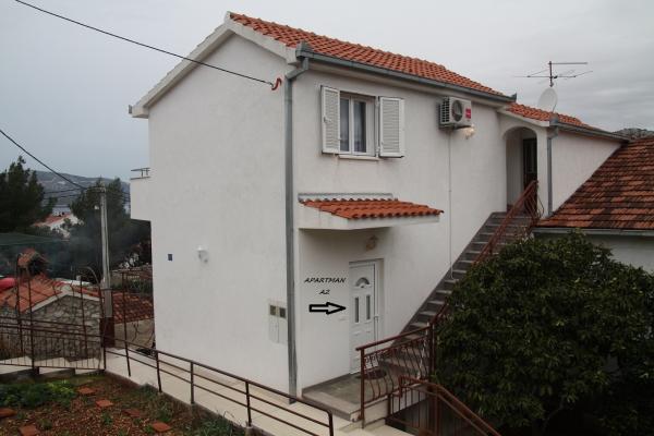 Very enjoyable rest in a quiet and peaceful location. The terrace offers a beautiful view of the sea and the surrounding area, the apartment comes with air conditioning, bathroom, kitchen, etc ... there is no need to take your own cutlery, cups, pots etc ... Apartment very well maintained, clean and comfortable, definitely a plus. Hosts very nice people, they can be replaced with the Euro on Kuna. The nearest grocery store is 10 steps:-))) not far away are also restaurants where you can eat pizza, etc ... The town is located some 5-6 km from Trogir, where you can spend hours exploring and buying souvenirs.