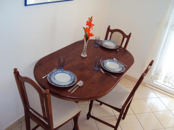 Fantastic place Holidays 2016 This time in a different composition and another apartment. Apartment very nice, clean, well-kept and fully equipped. Air conditioning without it, it would be impossible to survive), parking space, a terrace not large but with a view of the sea and for breakfast and dinner perfect for two adults and a child. The owners were extremely nice, hospitable and helpful. Beautiful surroundings and small town Restaurants and bars max 5 min distance. The nearest beach is 5 minutes. There are various types of beach nearby so everyone will find something for themselves. We recommend a rocky beach from the apartment going up among the houses, the opposite direction to the other two beaches. I recommend taking a trip to the nearby towns of Trogir and Split, where you can buy regional Rakije and various regional specialties at the bazaars. For the courageous and motorized trip to Dubrovnik by the coast and not the motorway, unforgettable views, by the sea, winding road streamers change the landscape wonderful. It was an unforgettable holiday, the advantage of this town is that there is no million carousels, stalls, shops, etc. on the Polish seaside. just to stretch the parents because the child wants here on the weekend evening from 20 to 22 stood such a small stallman visiting but had so little choice that one magnet has satisfied all the needs of children's purchases and the same joy of staying three and a child some calmer not embittered without these additional unnecessary attractions. We will definitely return to the same place to the same owners