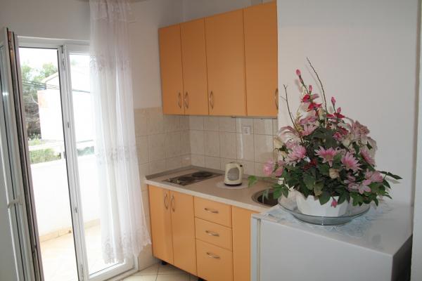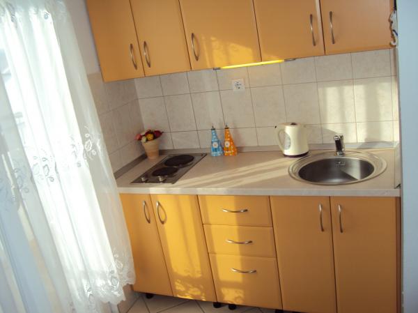This apartment is one of the best choice for two adults. There is a possibility for a third person/child, but i don't recommend it, it's very uncomfortable. There is one big and very comfortable bed, everything was clean and function. The kitchen was equipped by a kettle, a fridge (the owner of the apartment left 3 beers for us in the fridge, that's very nice) with freezer. There is also one small balcony with table and two chairs, however non seaview. Near the apartment is the supermarket, better say in front of the apartment. There is one parking spot in the shadow for each of three apartments. The owner and everybody were really nice and kindness. Conversations with them was super, they recommended to us a best way to get to Seget Vranjica. Beach is 3-4 minutes by walk and beautiful modern camp Belvedere with restaurants , bar, pool, beach, stands with souvenirs, postcards, is 6 minutes far. We were absolutely satisfied and we are going to came back.