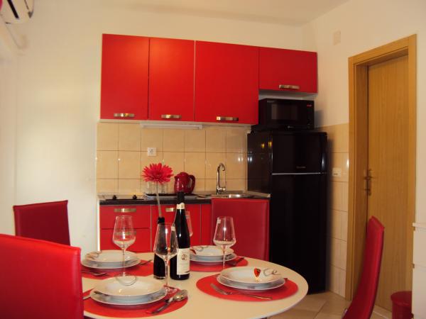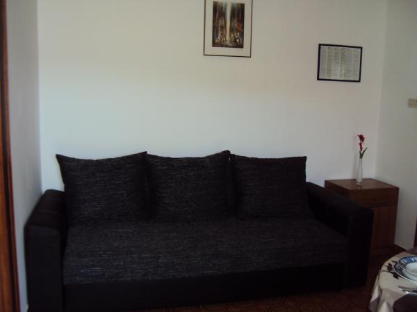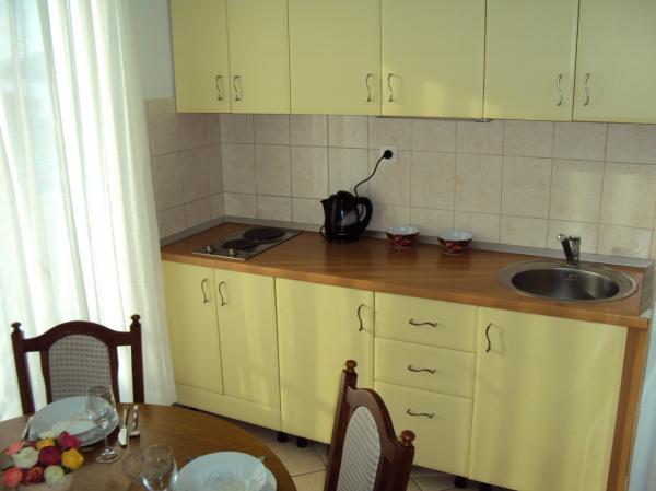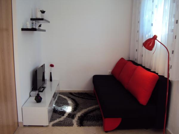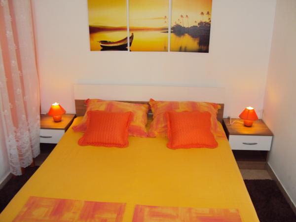 A perfect apartment for two people (plus a small child - an extra bed in the bedroom). The apartment has one bedroom with a large comfortable bed, plus a living room with kitchenette, balcony, bathroom. The kitchen is equipped with all the equipment needed for the operation, fridge with freezer, microwave whole tableware needed for everyday life, everything clean new. Bedroom as I already wrote a large comfortable bed clean and undamaged bedding (half of the stay the owners brought linen and towels for a change) Bathroom small but clean and aesthetic. The owners were extremely nice and very helpful, and above all very hospitable. I highly recommend I will definitely go back next year, if someone is looking for a nice quiet place to rest, I recommend with a clear conscience.