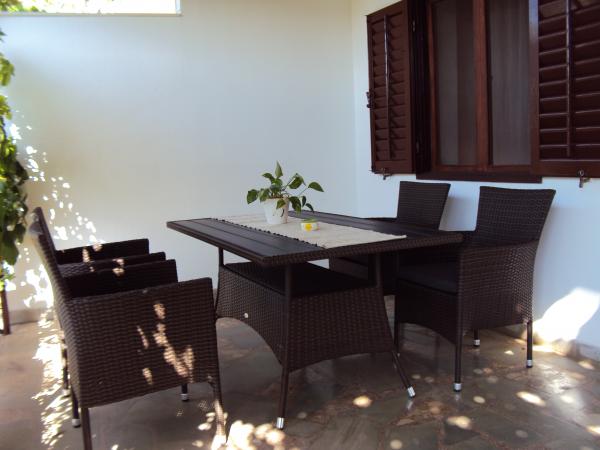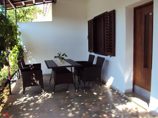 The apartment has a very good location (about 30 m to the sea) pebbly or pebble beach. Close to Trogir and Split - it is necessary to visit. Apartment very clean, a large number of towels, well-maintained, equipped with the necessary accessories, air conditioning, which was fully effective, a wonderful shaded terrace. Very close to the supermarket, restaurants and car mechanic. Very good contact with the owners (very helpful). Very nice welcome. I would recommend; heartily