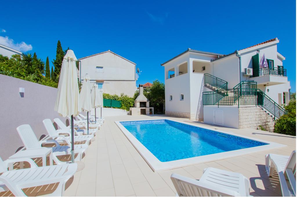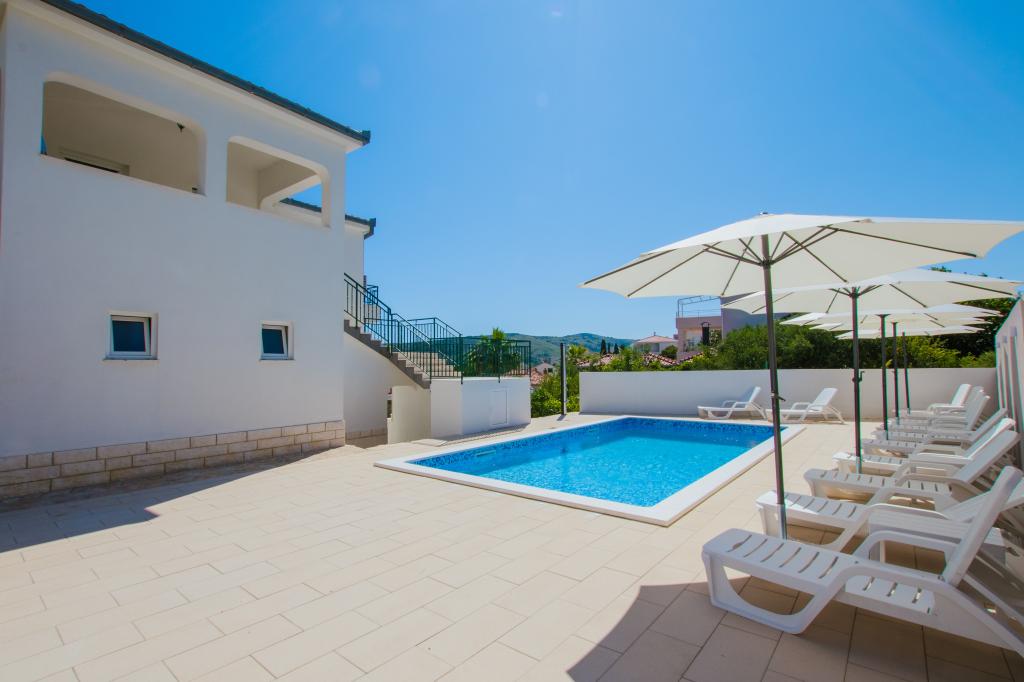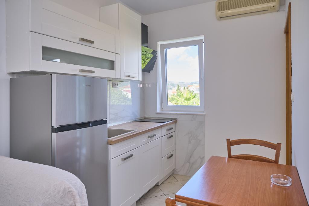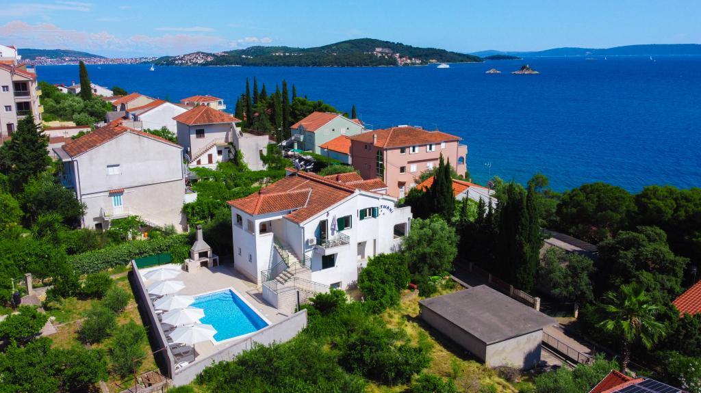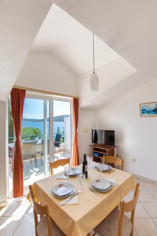 Residential tax is included in price.There is a possibility to apply for daily boat excursions to nearby small islands in the Trogir aquatorium. From the owners we can get information on excursions to the beautiful places surrounding us ... There is a possibility of buying local wines and oils. Guests can use the grill. . 200 m away is a camp with various amenities: tennis court, table tennis, mini golf, pizzeria, restaurant, ATM, playground and internet cafe. Apartments are 150 m away from the shop, 200 m from the center (restaurants and cafes), 900 m from the bus stop, 150 m from the Trogir boat line. Free WiFi and parking.