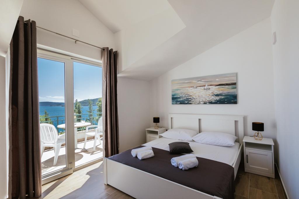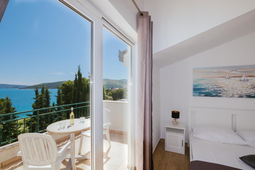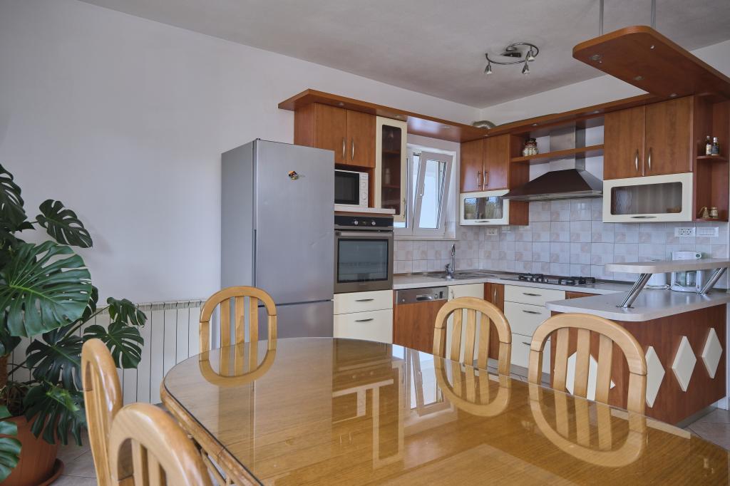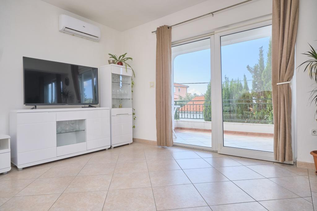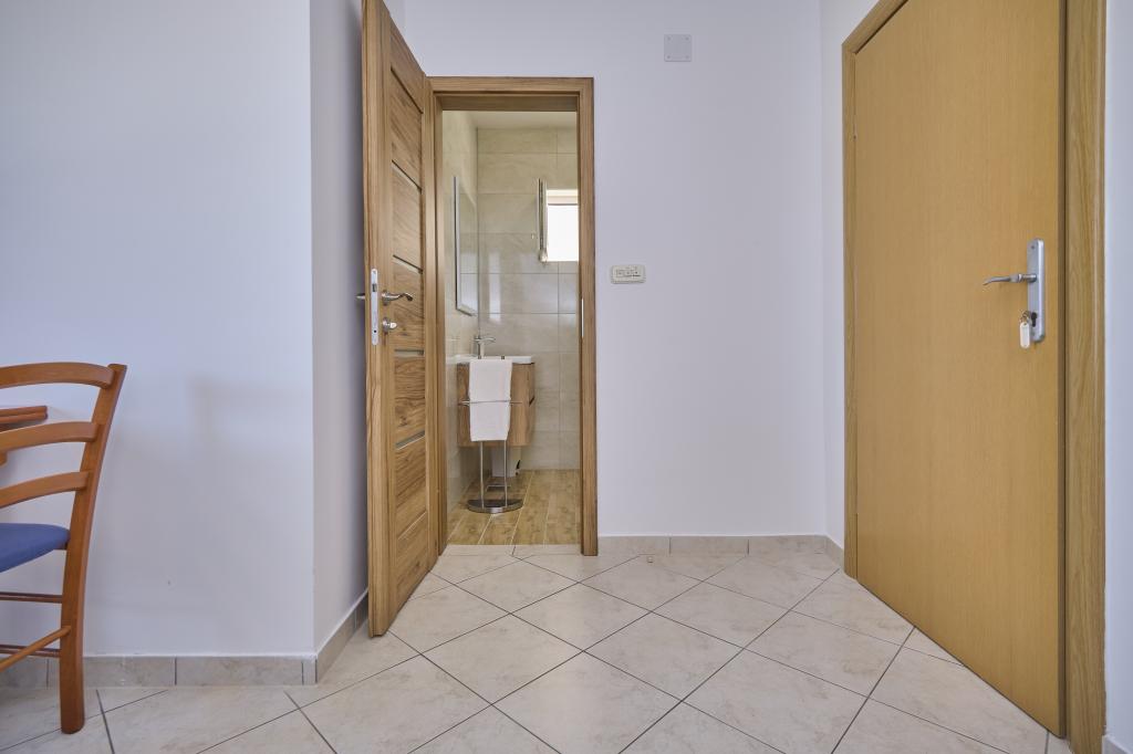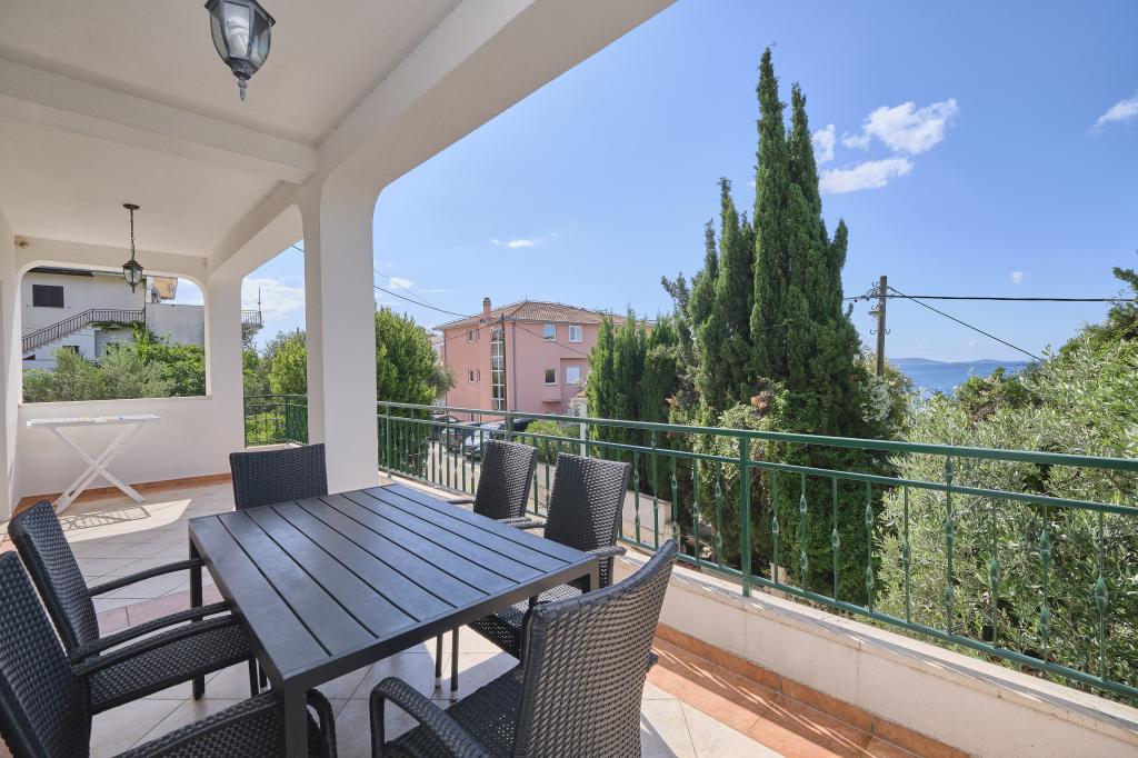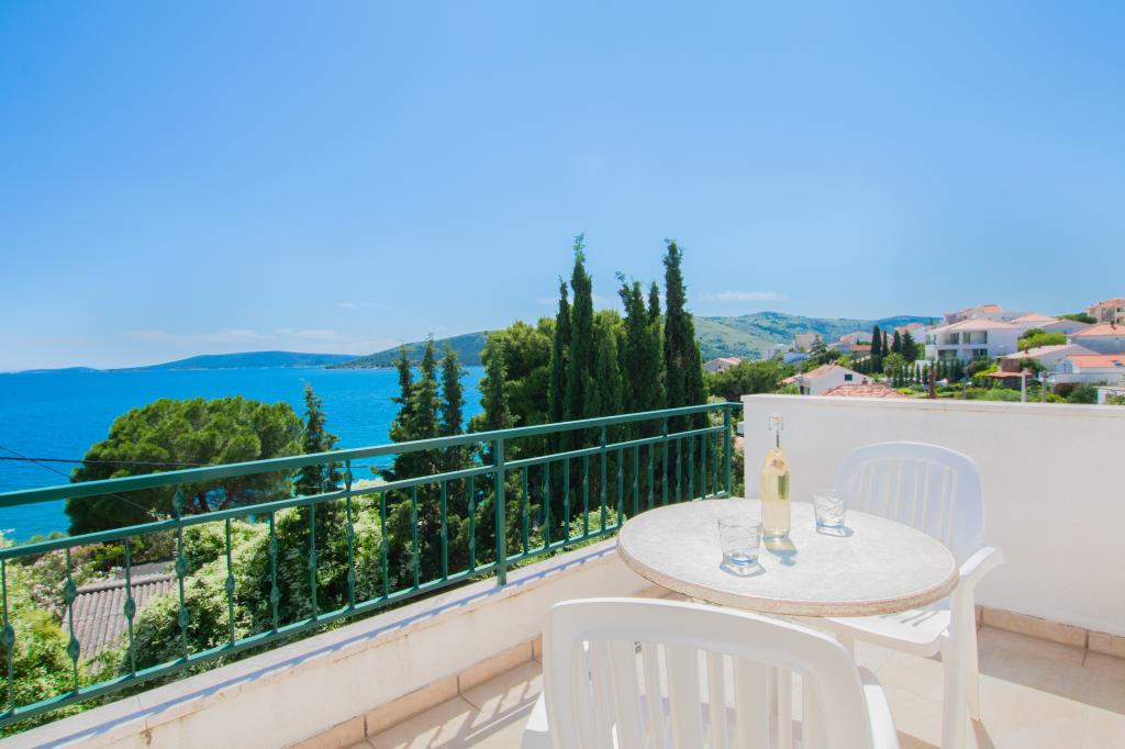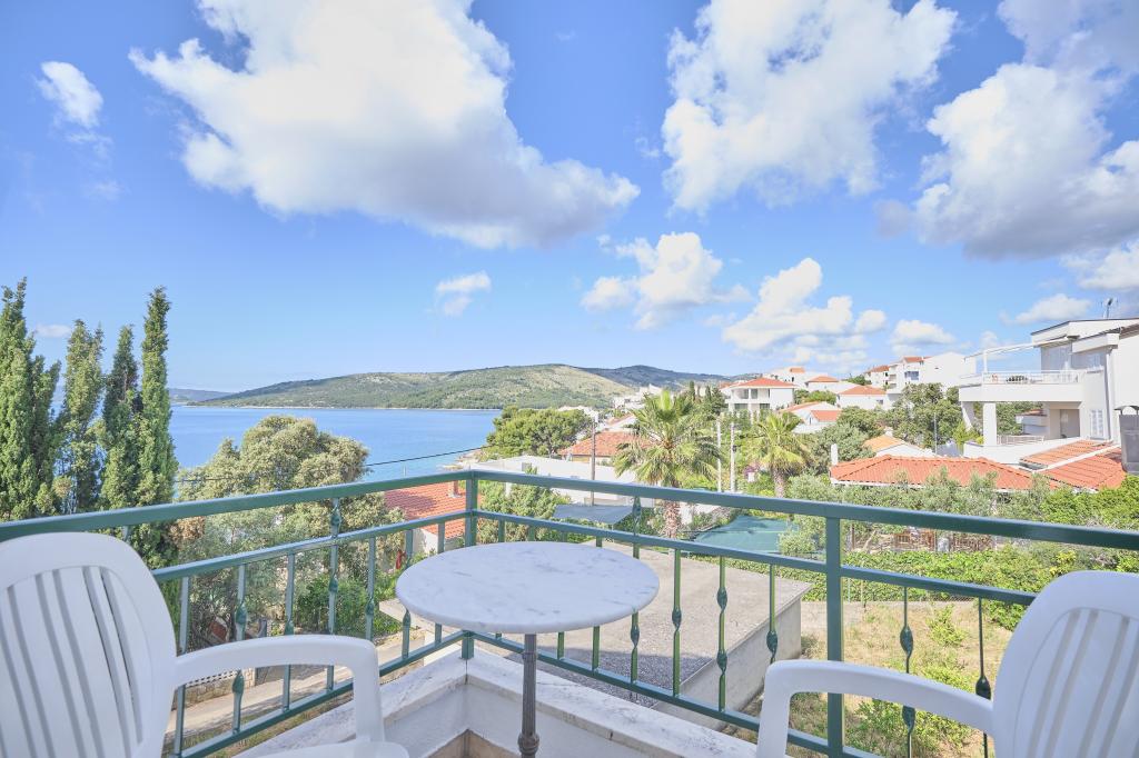 Apartments M are located in a small seaside town of Seget Vranjica. 5 km away from the famous, UNESCO protected city of Trogir and 7 km from the Split airport. The surroundings of Trogir and Seget Vranjica are characterized by lush vegetation, olive groves, numerous islands and islets, rocky and pebble beaches. Peace, quiet and hospitality are the main characteristics of this small town. Apartments M have 4 apartments in their offer. One double, one double with extra bed, one four bed apartment and large apartment with capacity for up to 6 people. Each apartment has its own kitchen, bathroom and toilet, dining room and balcony overlooking the sea. All apartments are air conditioned and equipped with a TV with dig. Satellite program and wi - fi internet. For all guests there is a parking space. The beach is only 30 m away. Part of the beach is concrete and ideal for sunbathing. The sea is crystal clear and the bottom is stone-pebble.