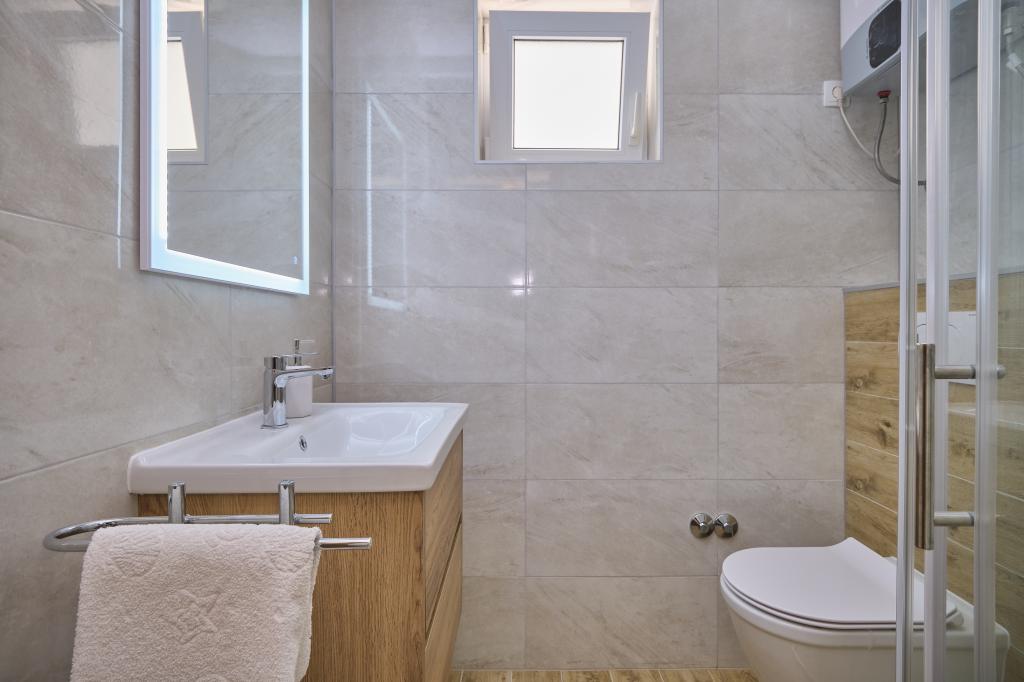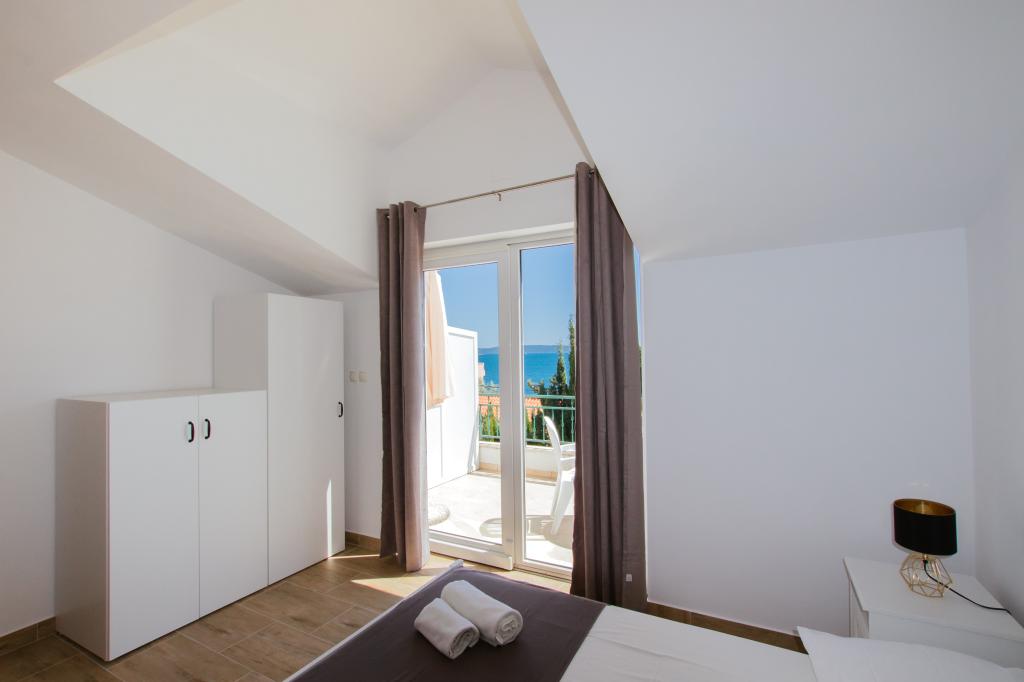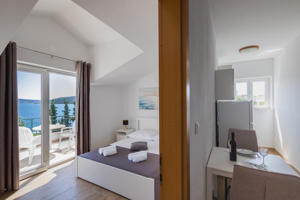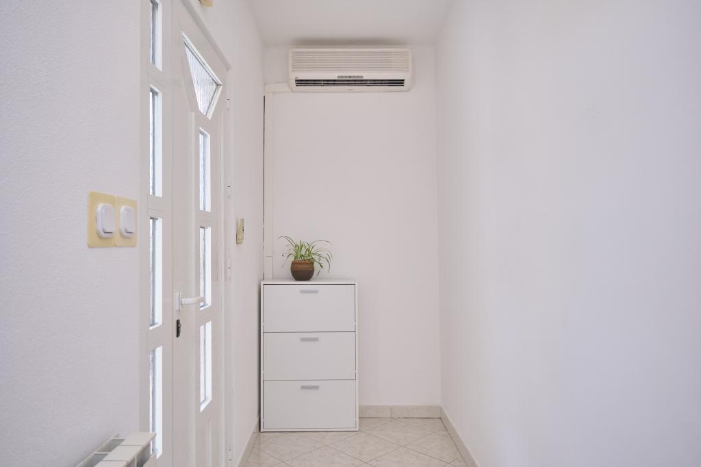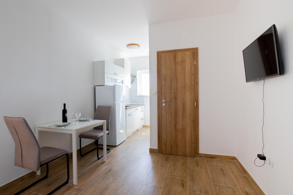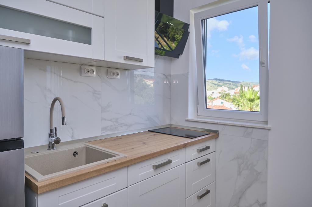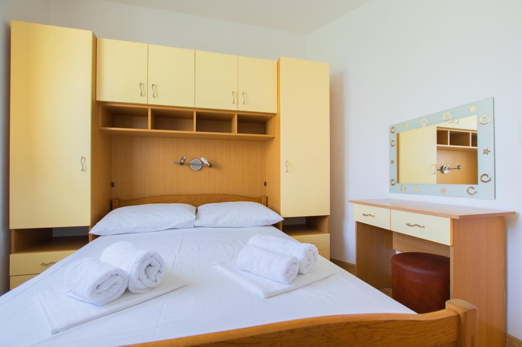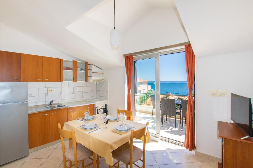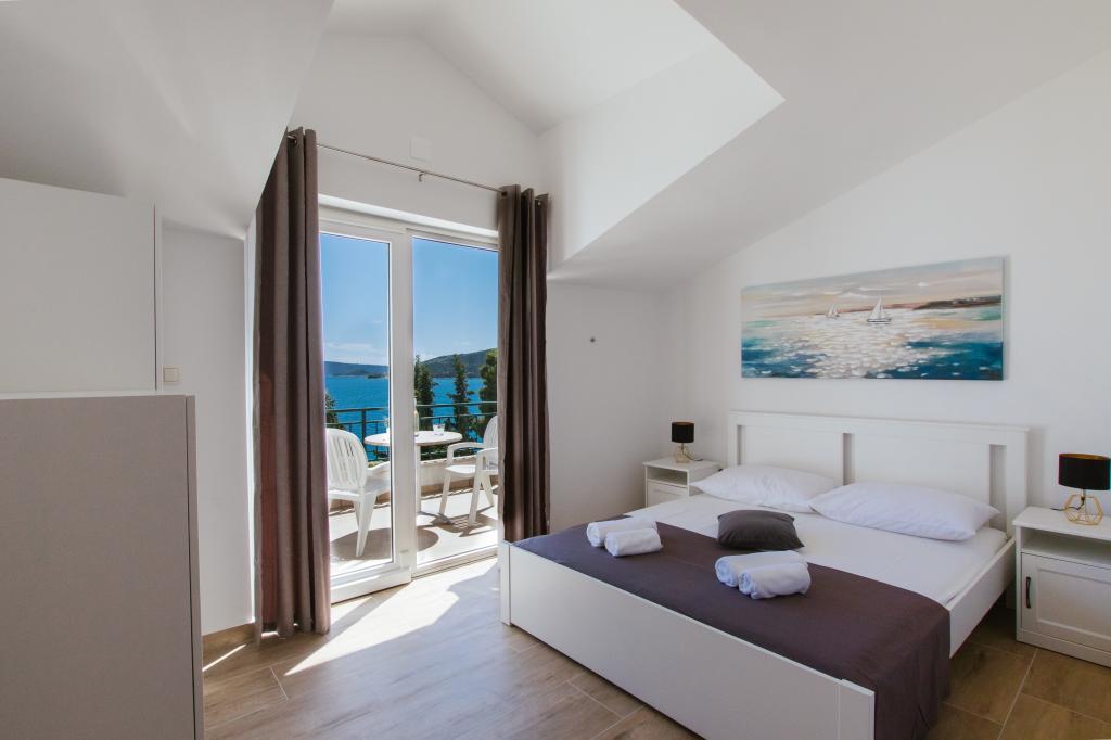 Apartments M are located in a small seaside town of Seget Vranjica. 5 km away from the famous, UNESCO protected city of Trogir and 7 km from the Split airport. The surroundings of Trogir and Seget Vranjica are characterized by lush vegetation, olive groves, numerous islands and islets, rocky and pebble beaches. Peace, quiet and hospitality are the main characteristics of this small town. Apartments M have 4 apartments in their offer. One double, one double with extra bed, one four bed apartment and large apartment with capacity for up to 6 people. Each apartment has its own kitchen, bathroom and toilet, dining room and balcony overlooking the sea. All apartments are air conditioned and equipped with a TV with dig. Satellite program and wi - fi internet. For all guests there is a parking space. The beach is only 30 m away. Part of the beach is concrete and ideal for sunbathing. The sea is crystal clear and the bottom is stone-pebble.