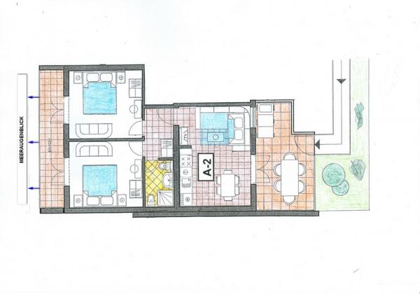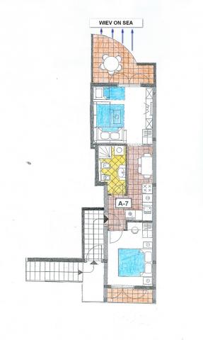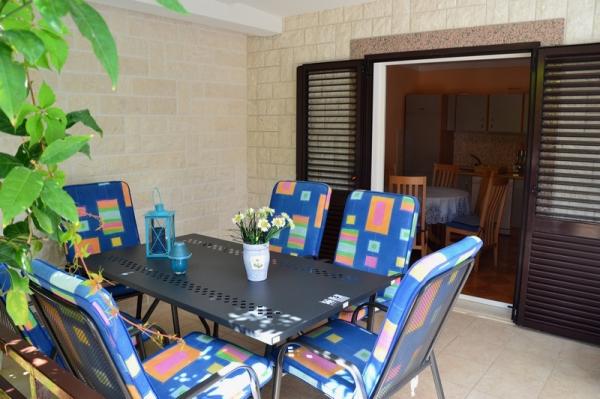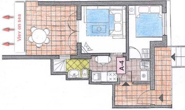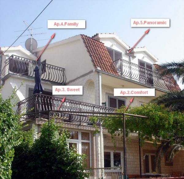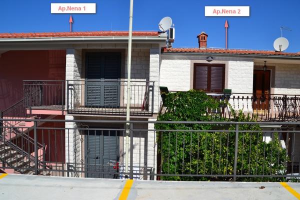 Apartments Nena A and B are located in the small village of Seget Vranjica, which is located about 4 km from Trogir. In the houses A and B, which are connected as a semi-detached building, there are 10 apartments only 100 m from the sea. The beaches are located 150-200 m from the apartment, sandy, rocky, but also adapted for children. All apartments have a balcony or terrace overlooking the sea, except Ap. 6 who only has no sea view. At a distance of 20 m from the house is a market with food (fruit and vegetables, meat, staples). From the starting point of the boat several times to don and night to Hotel Honey (2 km) and to Trogir (4km). Each apartment guest gets in the price private parking, a larger apartments parking for 2 cars. The price includes: accommodation in apartment, air conditioning, tourist tax, internet and WiFi, private parking, complete bed linen and two towels per apartment per person. Bed linen and towels are changed every 7 days.