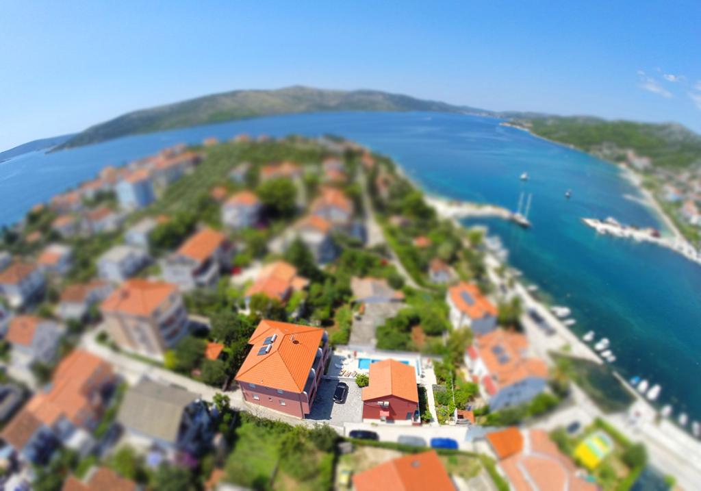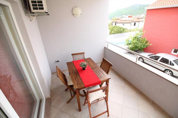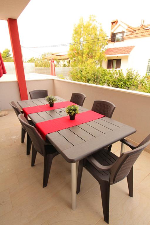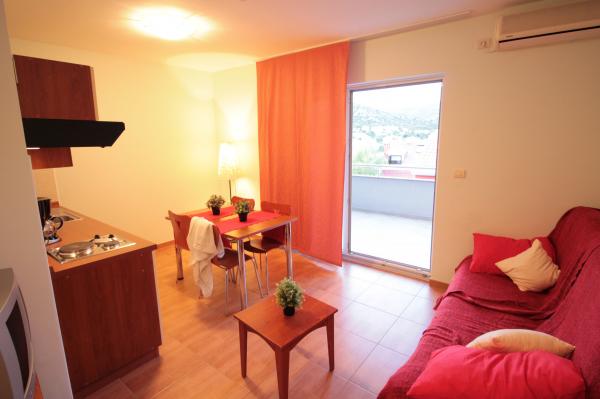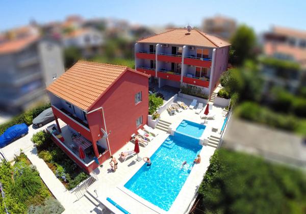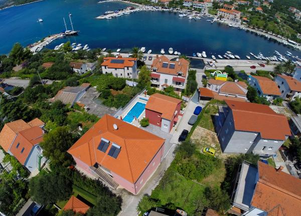 The building has 6 apartments and one detached house for 8 people. There are two with two bedrooms where each room has its own bathroom. The house has 4 rooms. The other four apartments consist of one bedroom, two extra beds in the living room and one bathroom. All six apartments have large terraces (approx. 12m2) with a view of the sea. The apartments are about 30 meters from the sea and are located in a quiet environment. The price of the stay includes unlimited use of the swimming pool with heated water, massagers and counter-current swimming located in the yard, free WIFI, free use of the grill, free parking within the facility. Children have a children's pool and a play area. The beach, restaurant and shop are a 2-3 minute walk from the apartment. Our guest house is available to guests every day. With prior notice, we offer free use of the boat mooring in the immediate vicinity of the apartment (40m).