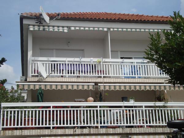 The house is located 8 min. walk to the town center and 5 min. walk to the first beach. The apartment is located on the second floor of the house, has an area of 55 m2 and consists of a living room with kitchen and dining room, bathroom, two bedrooms and a balcony of 8 m2 with a sea view. The apartment is for 4+1 people. The kitchen is equipped with a dishwasher and the bathroom with a washing machine. Coffee maker. Microwave oven. Air conditioning.