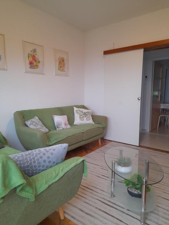Apartment Maja is located on the second floor of a family house in a quiet part of Selce. Next to the entrance to the apartment is a large covered terrace with a sea view. The apartment also has a spacious balcony with a sea view that can be accessed from the living room. There are also two bedrooms, one with a double bed and one smaller one with two single beds, a bathroom, kitchen and separate toilet, air conditioning and wi-fi. Guests have access to one parking space in the fenced yard in front of the house.
