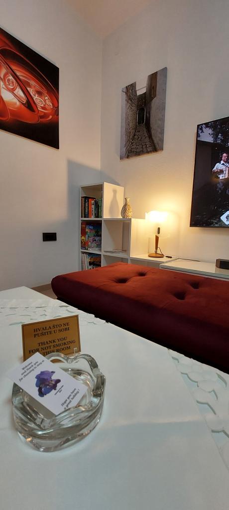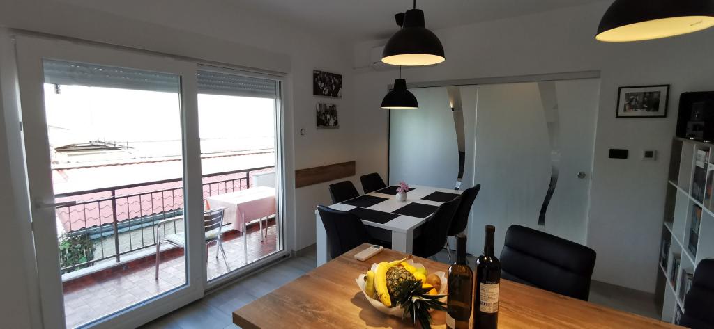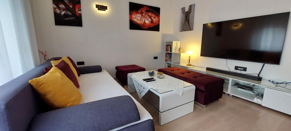 Fully and modernly equipped two apartments near the beach located on the mezzanine (apartment Perunika) and the first floor (apartment Bougenvilija). Both apartments have two balconies and secured parking in front of the house. A bedroom with a double bed, a living room with a sofa bed and a kitchen with a dining area are air-conditioned. Internet is free. The building is located 5 minutes' walk from the center and less than 2 minutes (100 meters) from the beach.