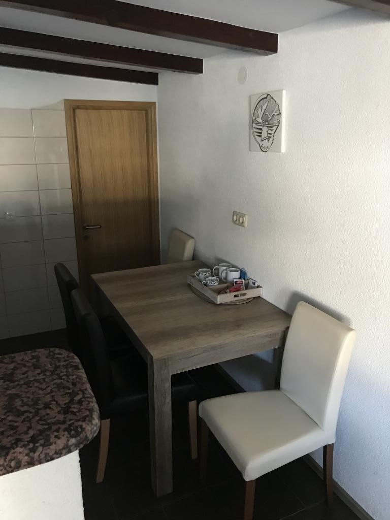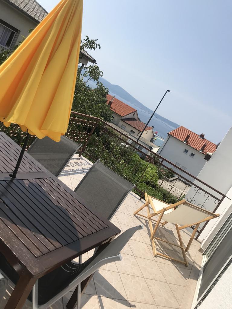 The apartment is very nice, spacious, modernly decorated, fully equipped and clean and tidy. The terrace is large with a view of the sea. Most important things are accessible on foot (shop, center, beach). The hosts are very kind and accommodating. Excellent accommodation for every recommendation.