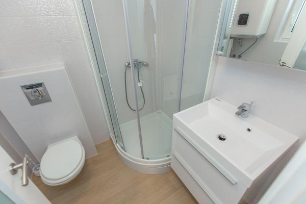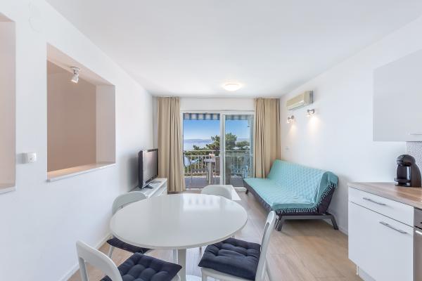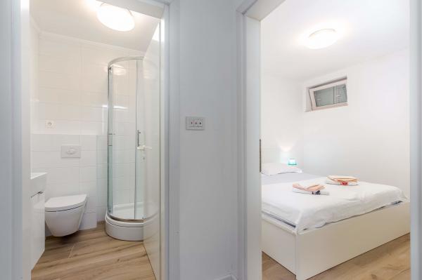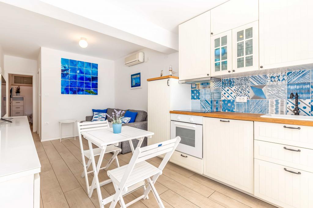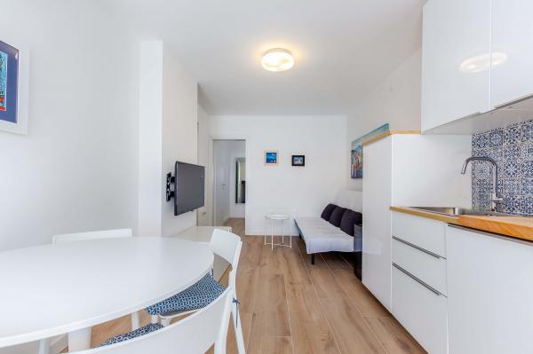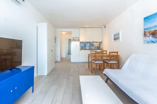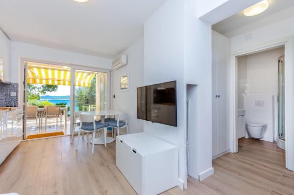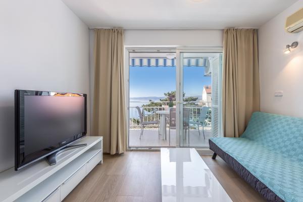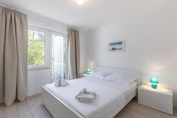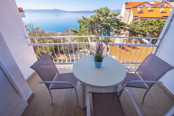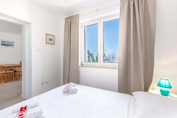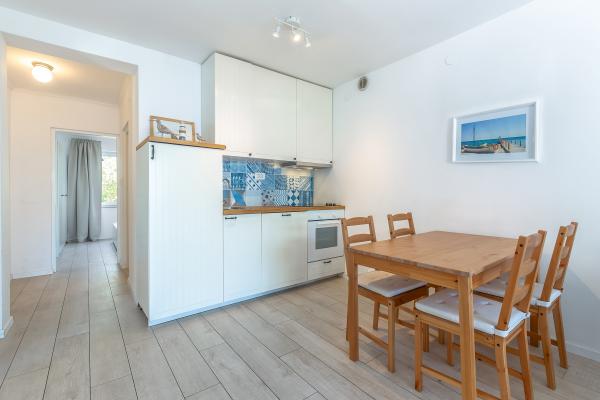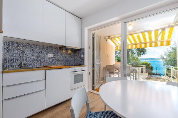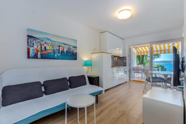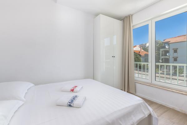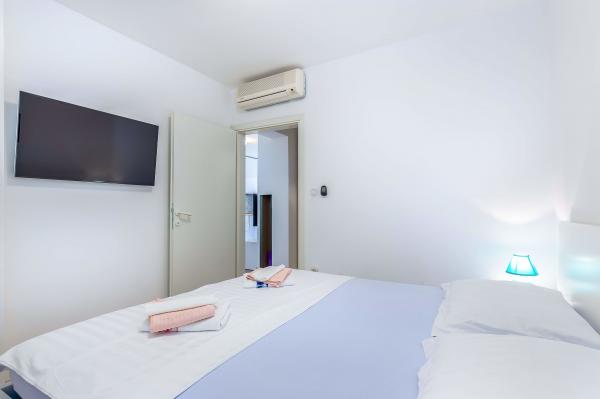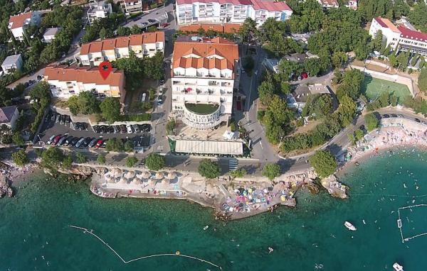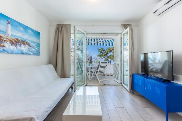 Completely renovated and fully equipped (dishwasher, washing machine, air conditioning and free Wi-Fi) apartments that are located in the first and second row to the sea. All apartments have terraces with open sea view and its own free parking which is located just behind the building. Large pebble and concrete beach are right in front of the building (distance of approx 50 m), as well as a cafe, restaurant. In the hotel next to the building breakfast / lunch / dinner can be taken at a reasonable price as well as swimming pool with sea water in case of bad weather (also for reasonable price). Close to sports facilities (tennis, football, aqua park, etc. ).