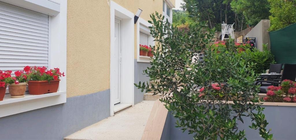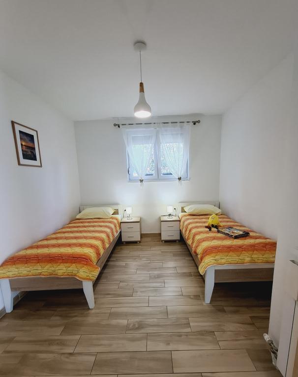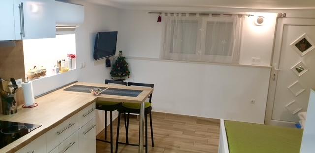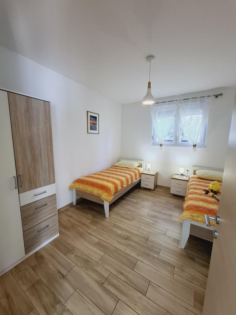 Apartment 1 is located on the ground floor of a family house with a large private terrace and partial sea view. Fully equipped, air conditioning, internet, parking. It is located approximately 300 m from the sea and beach and the town center. It consists of two double bedrooms (one with a double bed, one with two single beds), a living room, an equipped kitchen with a dining room (dishwasher), a bathroom (washing machine) and a separate toilet. Parking for 1 vehicle is provided in the courtyard of the house. The studio apartment is located on the ground floor (high ground floor) of the family house. It has a kitchen, a double bed 160x200 cm, a bathroom, air conditioning and a small terrace in front of the studio. Shared use of the barbecue. Apartment Lea is located on the 2nd floor. It has 2 bedrooms, an equipped kitchen, a bathroom (washing machine), air conditioning, a large terrace with a sea view. Parking for 1 car is provided in the courtyard of the house.