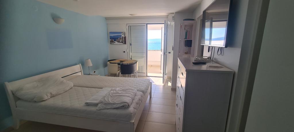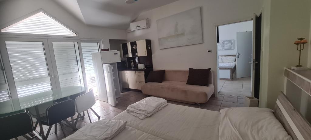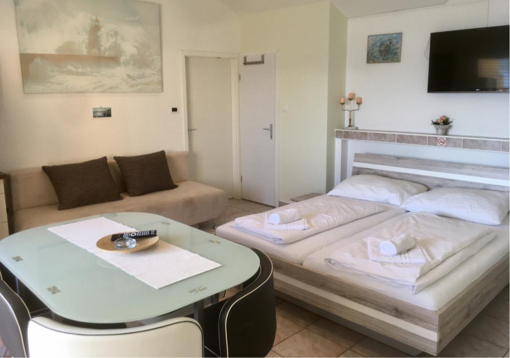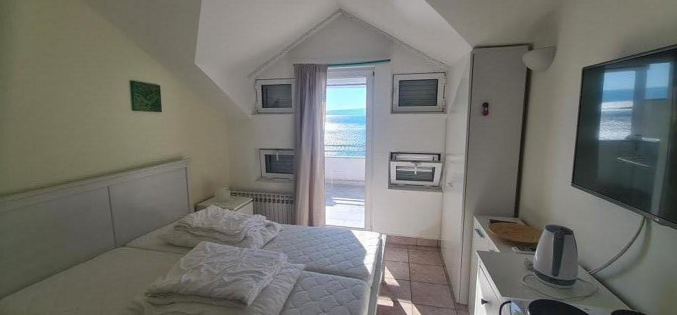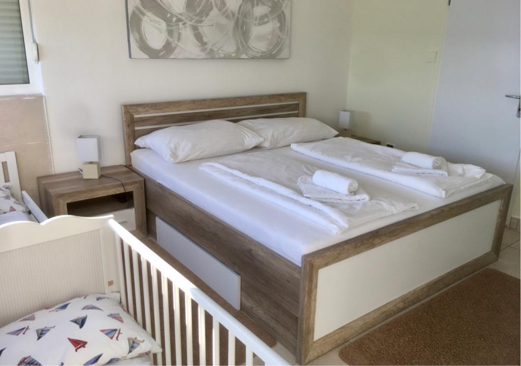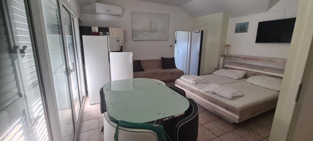 The apartment is neat, clean and tastefully furnished and well equipped. There are deck chairs, umbrellas, boards, bicycles, a children's playroom at your disposal... In addition to the location (first row to the sea), we are delighted with the very friendly hostess Branka, who is at the guest's service at all times. Unobtrusive, cheerful, well-intentioned and warm Mrs. Branka can be an example to all renters of what a good host should be. We recommend it to everyone, old and young, and families with children. The breakfast included in the price is varied and suitable for all tastes.