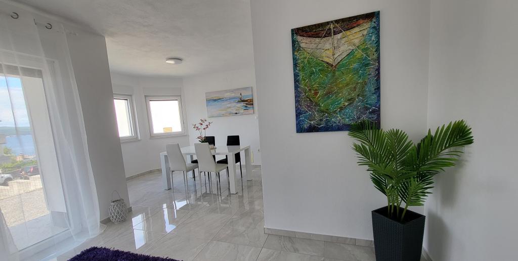 New apartments in the center of Selce, a small and picturesque town on the Adriatic coast, very close to Crikvenica - are located on the high ground floor and on the 1st floor of the house, they are spacious and airy. Both apartments consist of two bedrooms, bathroom, hallway, "open space" kitchen, dining room and living room and balcony. They have a beautiful view of the sea and the beach. The apartments are located 2 minutes walk from the center of the town, shops, promenade, beach, restaurants and cafes. Parking is in the courtyard of the house. Air conditioning, wi-fi and parking are included in the accommodation price. The price includes tourist (residence) tax and apartment cleaning. PETS ARE NOT ALLOWED.