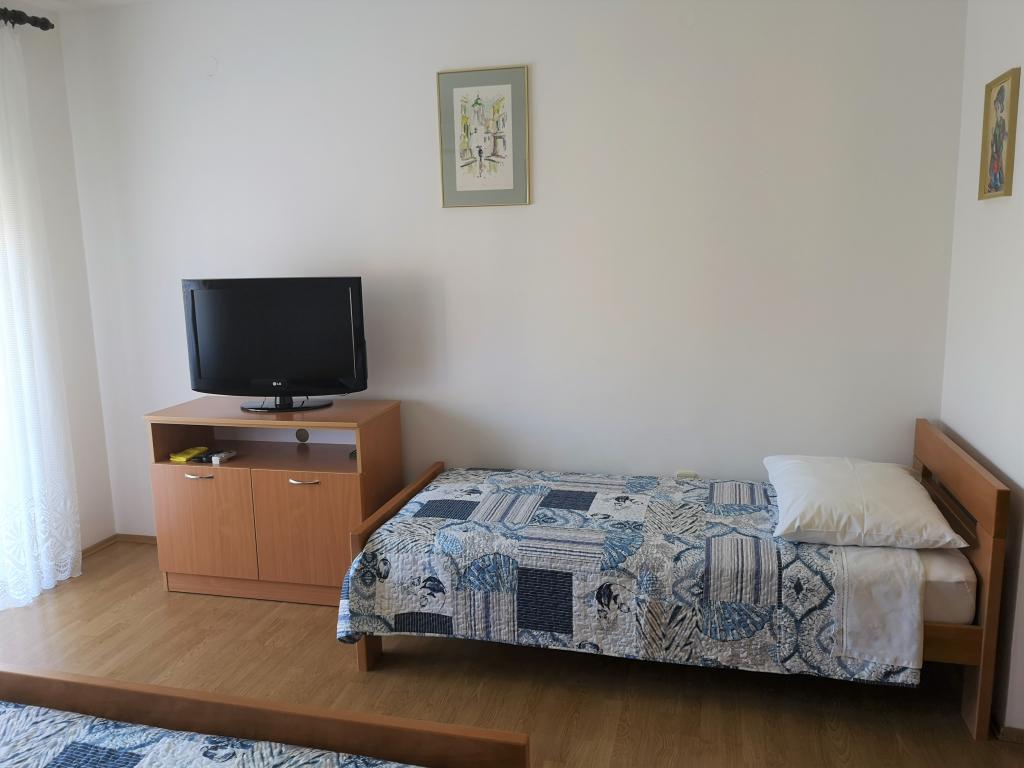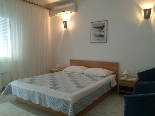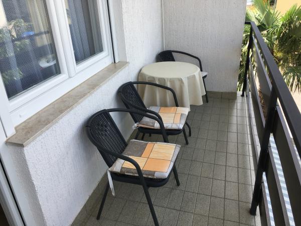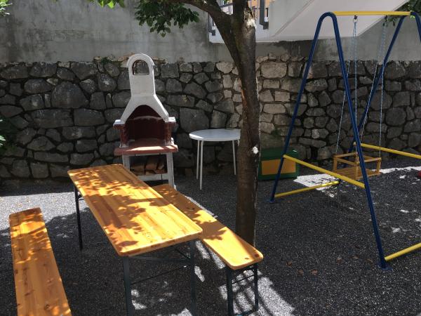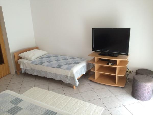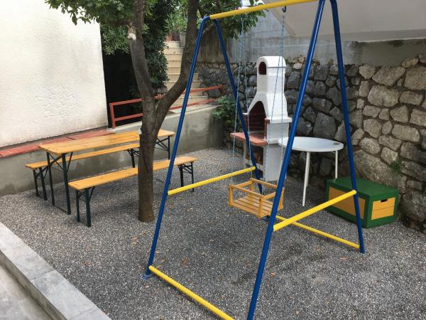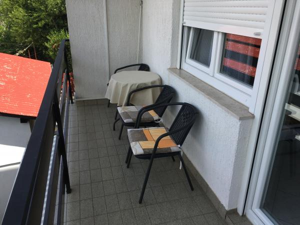 The apartments are located in a family house on the first floor. Each apartment has a separate entrance, balcony and parking in the front yard. In the yard behind the house are available for swing and slide for children. The apartments consist of a bedroom with three beds (baby cot or extra bed), fully equipped kitchen with dining area, bathroom with toilet. Apartments are equipped with air conditioning and satellite TV, and there is free use of the Internet.