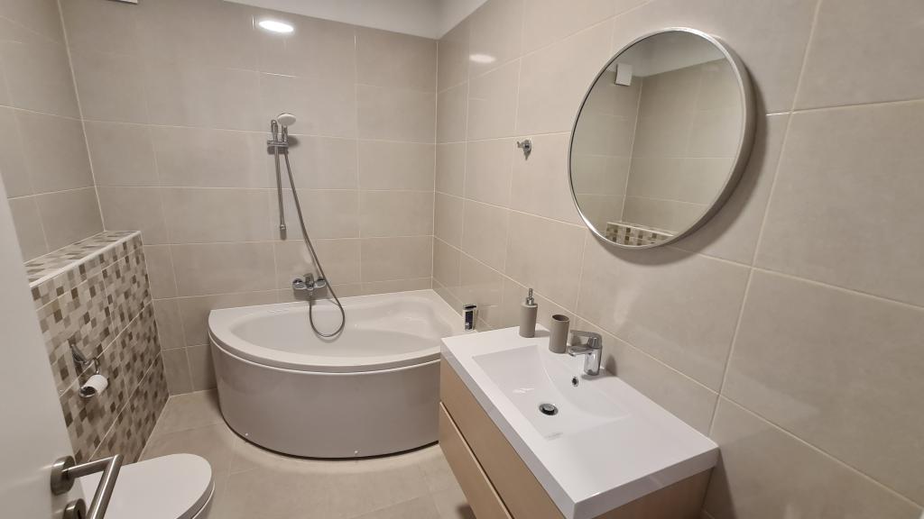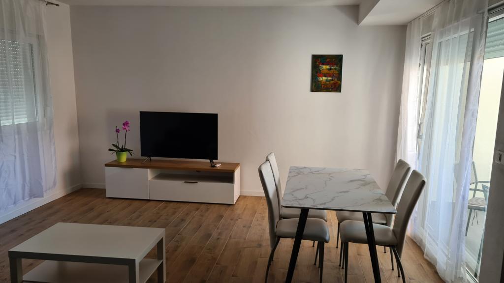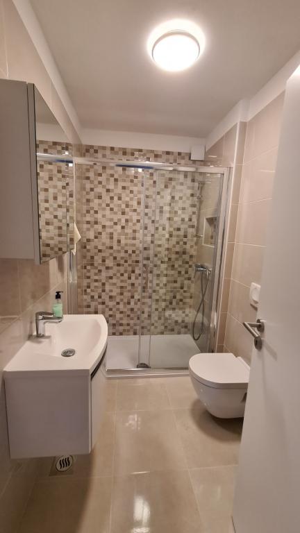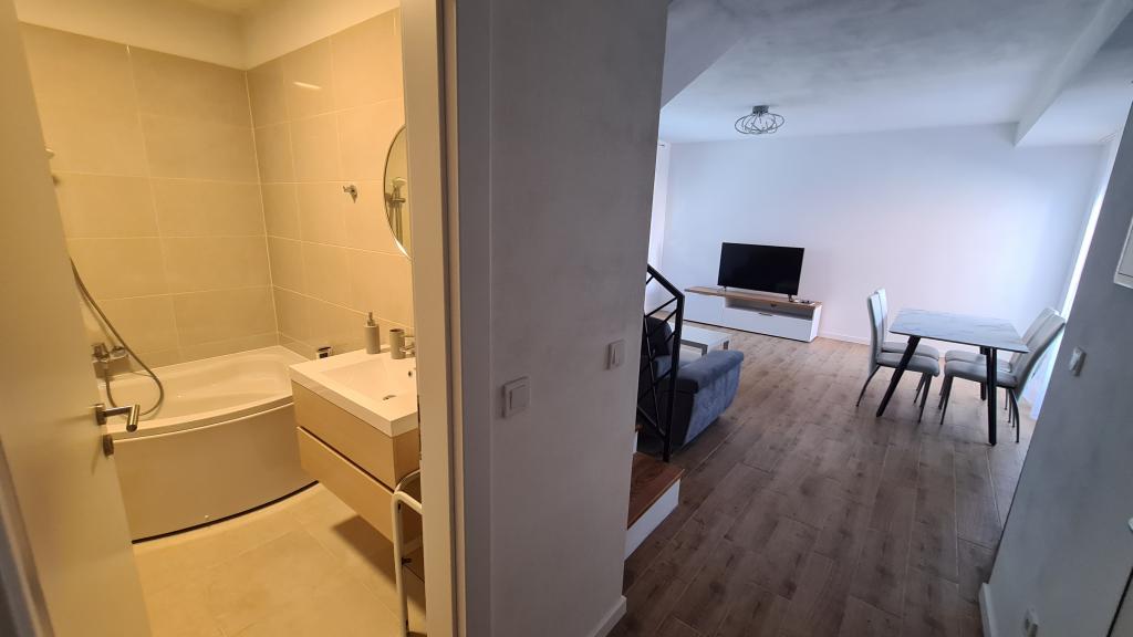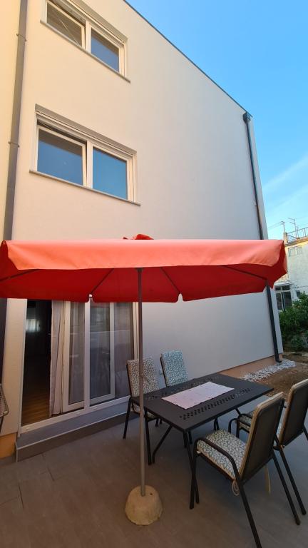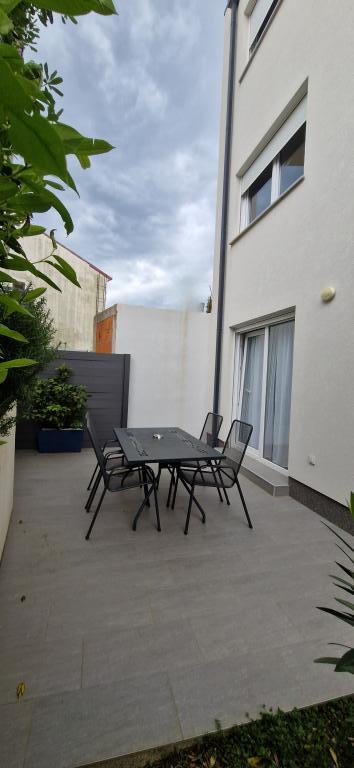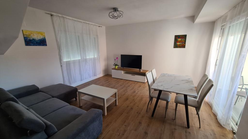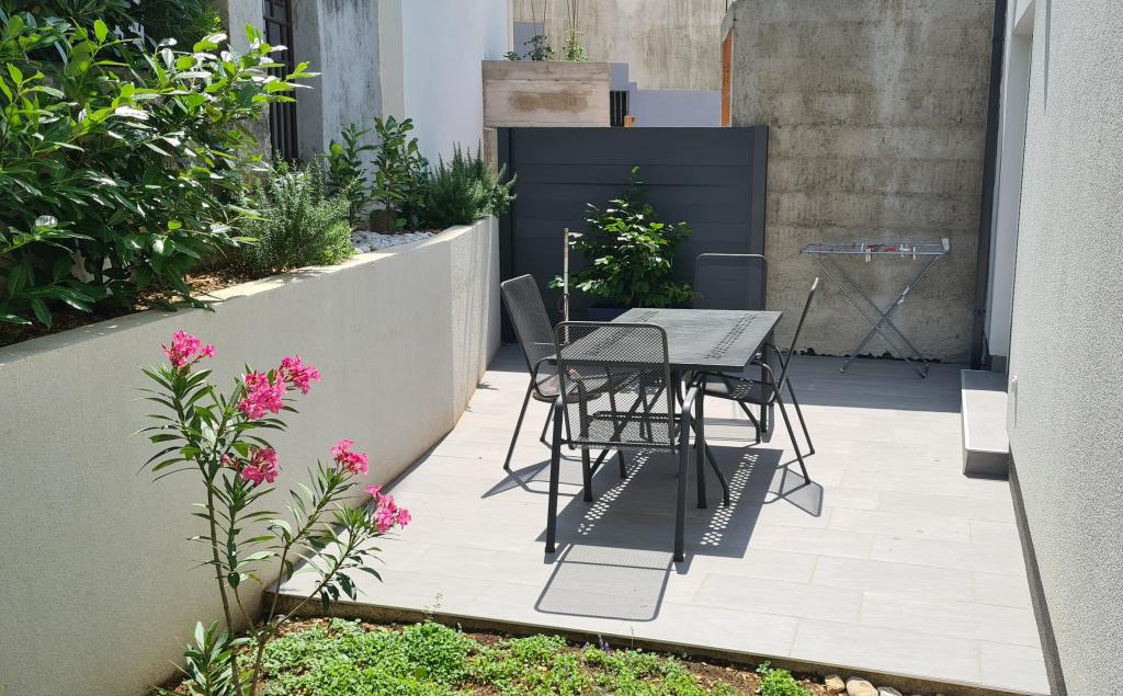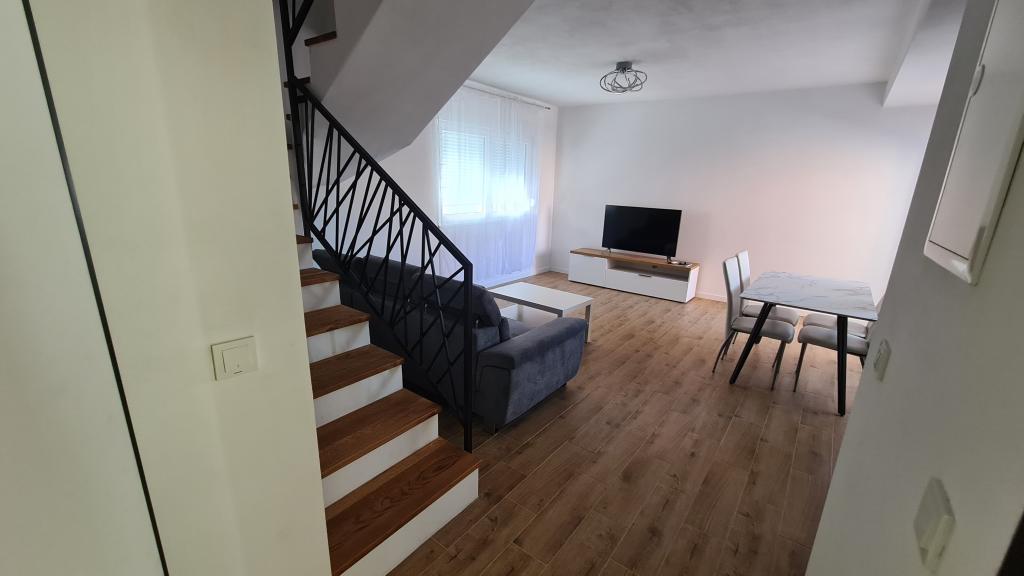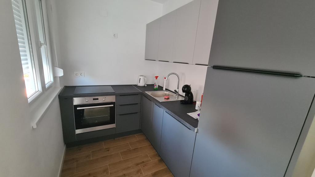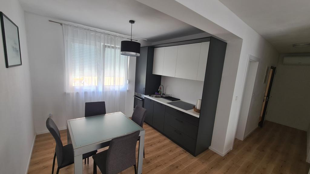 AP-Ground floor: New, well-furnished apartment, ideal for a great vacation. The residential building consists of an entrance, a bathroom, a kitchen, a private terrace and a dining room, a living room with a sofa bed and a bedroom with a double bed. Guests have their own terrace at their disposal. Two-story AP floor: New, well-furnished apartment, ideal for a great vacation. The residential building is on two floors. Lower floor living area (entrance, bathroom, kitchen, dining loggia and living room with sofa bed) and sleeping area on the upper floor (two bedrooms with double beds). It is located in an exceptional location, two minutes from the central square, one minute from shops and bakeries and various restaurants, and three minutes from the beach. Free parking and Wi-Fi.