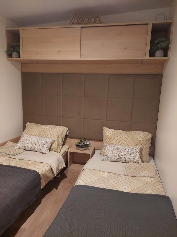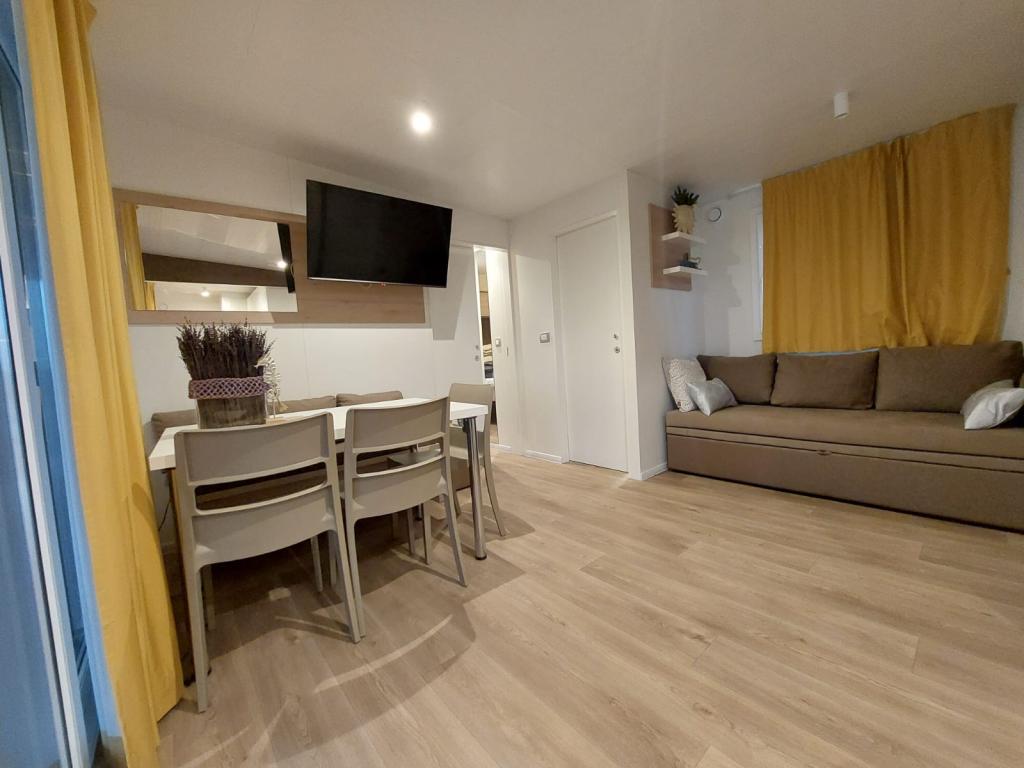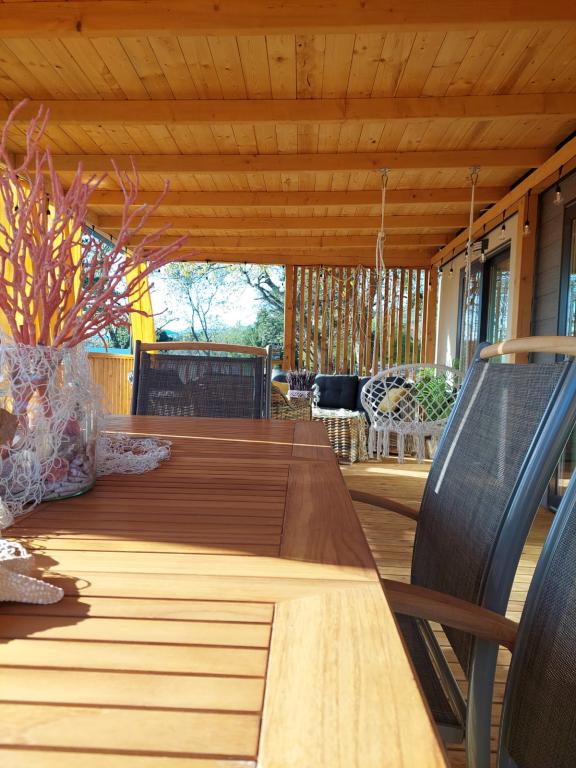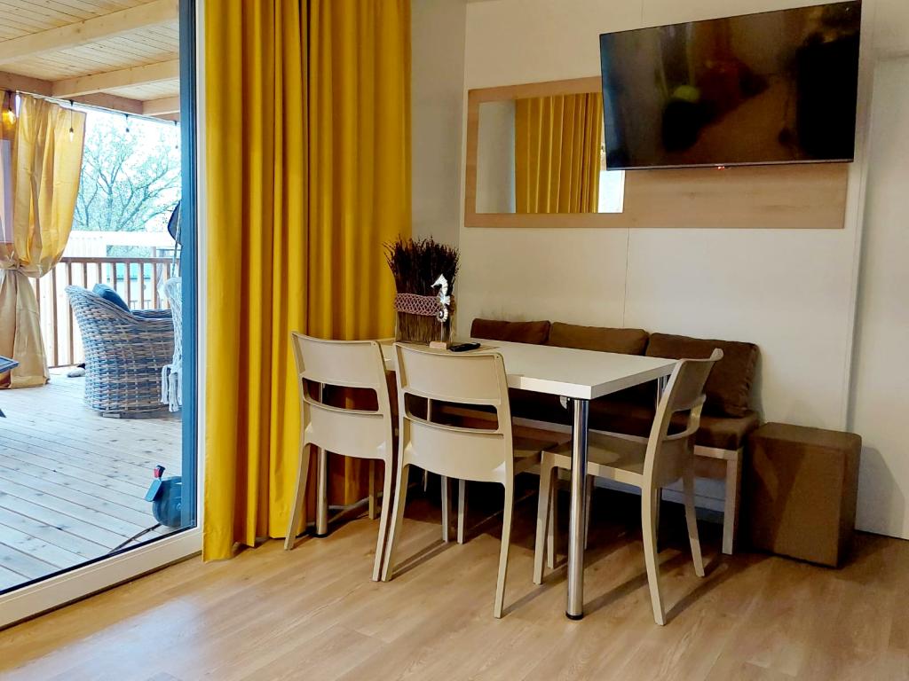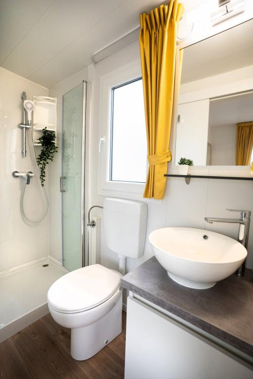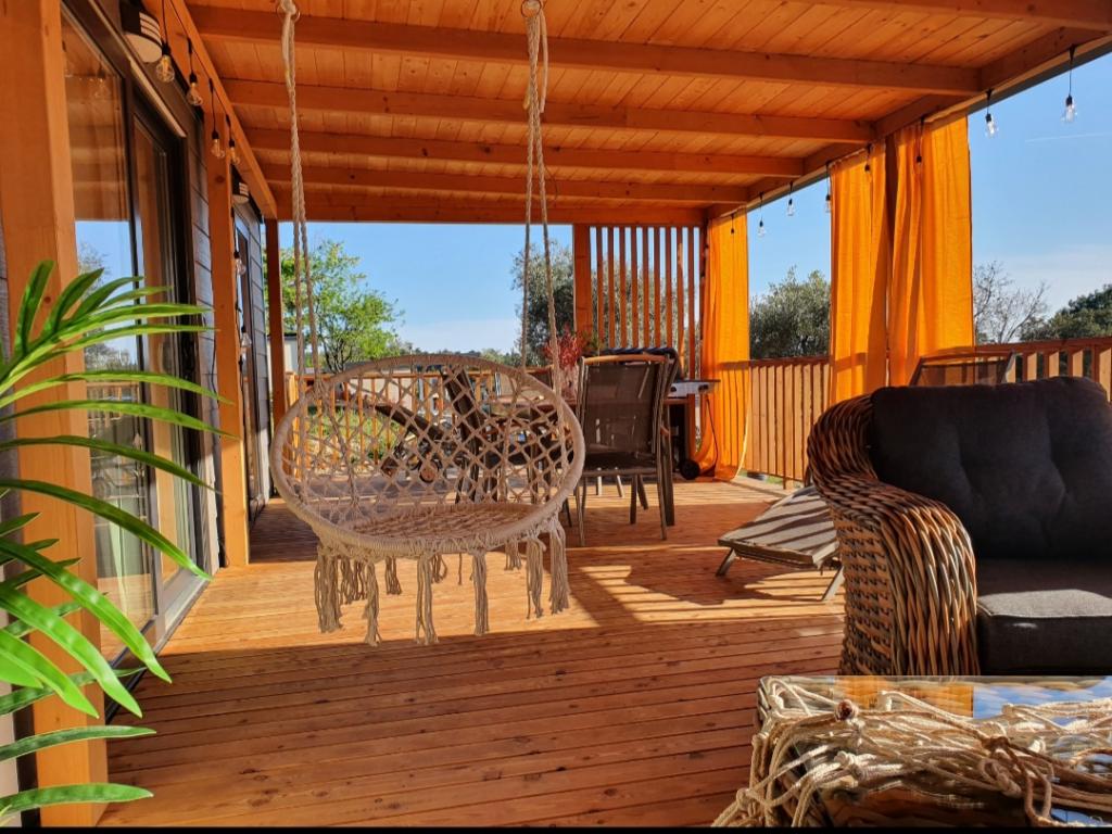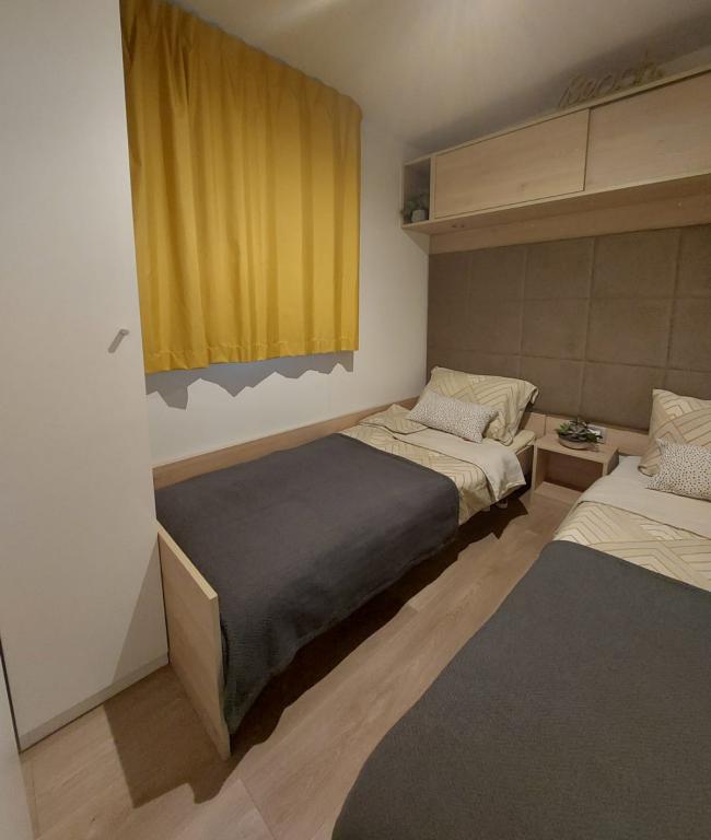 JaNoRe - Mobile Home located in the shade of Mediterranean trees surrounded by rich greenery and beautiful views of the sea and the island of Krk. The camp offers accommodation for true nature lovers of the famous combination of healing sea air and pine in which nature, the sound of waves and the smell of spruce are intertwined, with the feeling of relaxation you have in your own home, the terrace entices you to stay all day. Everything you need for a peaceful vacation, fun and recreation is located just 100 meters from the beach. A bakery and a cafe are inside the camp. The prestigious and luxurious 36 m2 mobile home is the ideal size for a comfortable holiday with two air-conditioned bedrooms and a living room and two bathrooms with a fully equipped kitchen, which provides all the conditions for a luxurious time. Inside the house you can enjoy relaxing in an elegant trendy interior and outside on the large, luxurious, covered terrace of 38 m2 which offers the possibility of staying in nature in all weather conditions.
