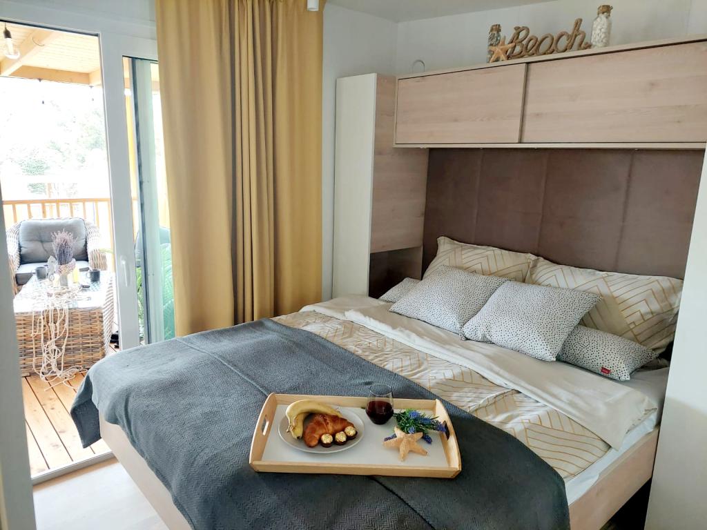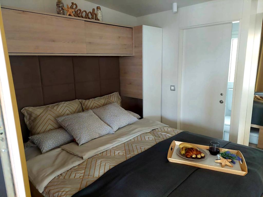 The superior decoration of the mobile home and the unique microclimate guarantee a perfect vacation. The rays of the sun will find their way to you with a morning coffee or a favorite drink on the covered terrace, which hides an additional surprise for romantics, hedonists and sports types with many extras for the perfect vacation. In addition to the house we offer: 2 x SUP boards, beach trolley (Bollerwagen), 1x electric scooter, 1x mountain bike, electric barbecue. The camp has built a new pool (outdoor pool) on two cascades and a playground for children are a perfect part of the overall experience for young and old. The camp has many additional sports facilities, excursions, diving course near rent a boat.