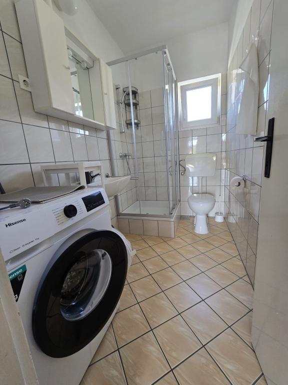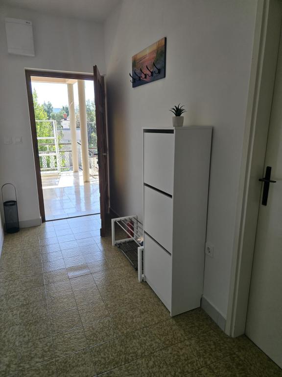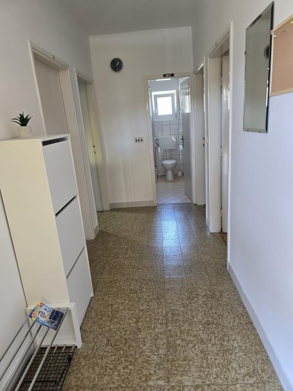 First floor of a family house in a quiet part of the town with 2 bedrooms, kitchen/living room, terrace and yard, 2 bathrooms, ideal for family or friends. The center, shops, market (seasonal), cafes, bus station and church are 60-100 meters away. The ambulance is 200 meters away, the same distance to the restaurant and 200 meters to the sea and pebble beach. Zadar airport is 40 km away, 12 km to the highway exit Rovanjska. Paklenica National Park is 3 km away, other NPs - Kornati, Krka, Northern Velebit are an hour's drive away, NP Plitvice are 2 hours' drive away. Free parking in the yard. The floor is rented as a whole and it is not possible to rent just one room. The price is for the entire apartment regardless of the number of people. Pets, regardless of size, are not allowed.
