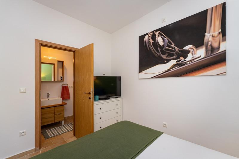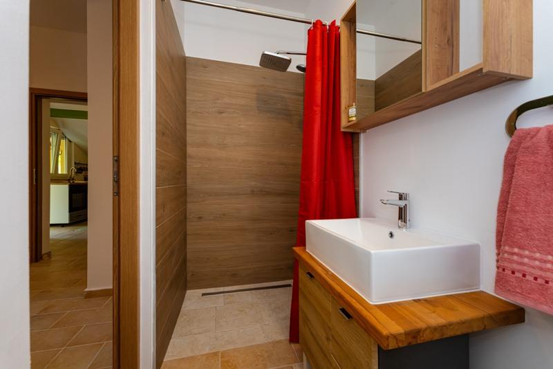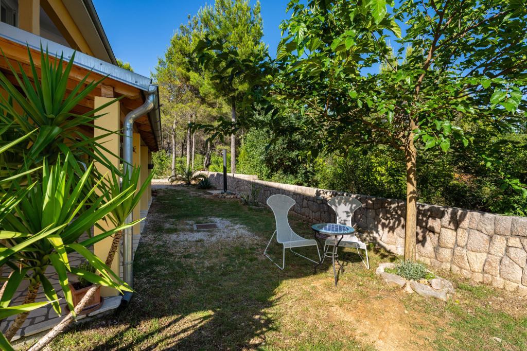 The facility is located in a quiet location, next to a pine forest and not far from the center of Selin (250 m). An ideal choice for a quiet family holiday or a holiday for couples away from the everyday noise and crowds. In front of the house there is a beautifully landscaped garden where guests can have a barbecue or relax on deckchairs in the shade of pine trees. There are 2 apartments in the building - 1 apartment for 4 people (2 bedrooms) and 1 apartment for 2 people. They are equipped with all facilities necessary for a pleasant and relaxed vacation. Each apartment has satellite TV, air conditioning and Wi-Fi. A garden shower is also available.