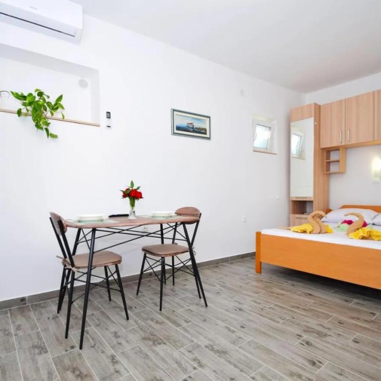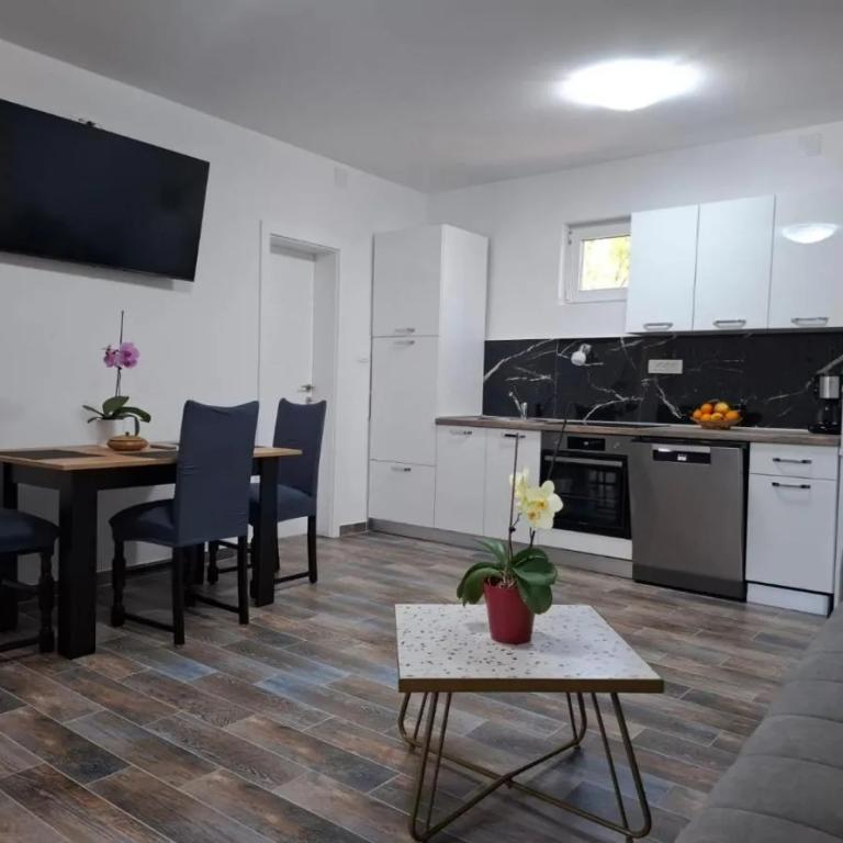 Apartments Ivano are located in the very center of the picturesque town of Seline, where the mountain touches the sea. At the foot of the Paklenica National Park, which offers beautiful walks in untouched nature. The beach is only 150m away from the property. A shop, church, cafe, bakery, pastry shop, and stands with local fruit and vegetables are on the square, and nearby there are restaurants, an ambulance, and a playground. The Ivano Apartments facility is completely fenced with secured parking.