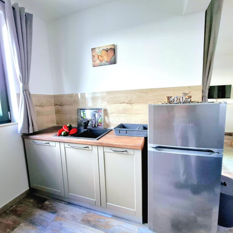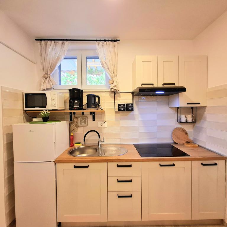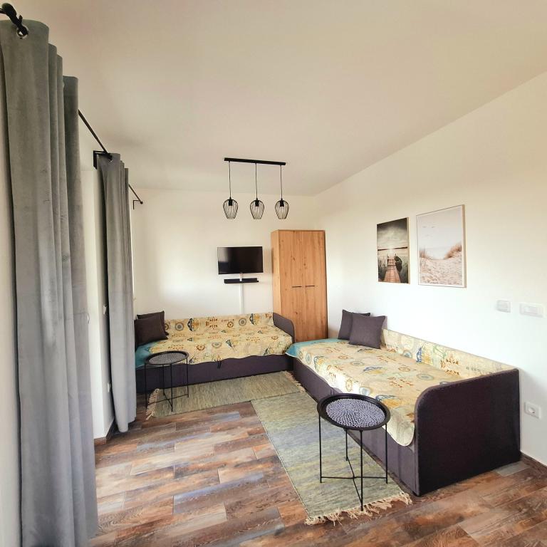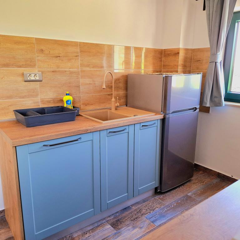 In the quiet and small town of Seline, below the Velebit mountain and by the sea, are the new and modernly furnished apartments "Velebita". The coast consists of long natural beaches and on the other side is the Velebit mountain range, which offers many mountain trails for walking and two canyons for hiking, all of which are part of the Paklenica National Park. The facility is located within walking distance, 10 minutes of easy walk through nature or 2 minutes by car to the beach Bili brig or Pisak beach, next to which there are free parking lots. It is also a 10-minute walk to the center of the town, where there is a shop, a stand with local fruit and vegetables, a tourist office, a church, an ambulance station, several cafes, restaurants and a pastry shop.