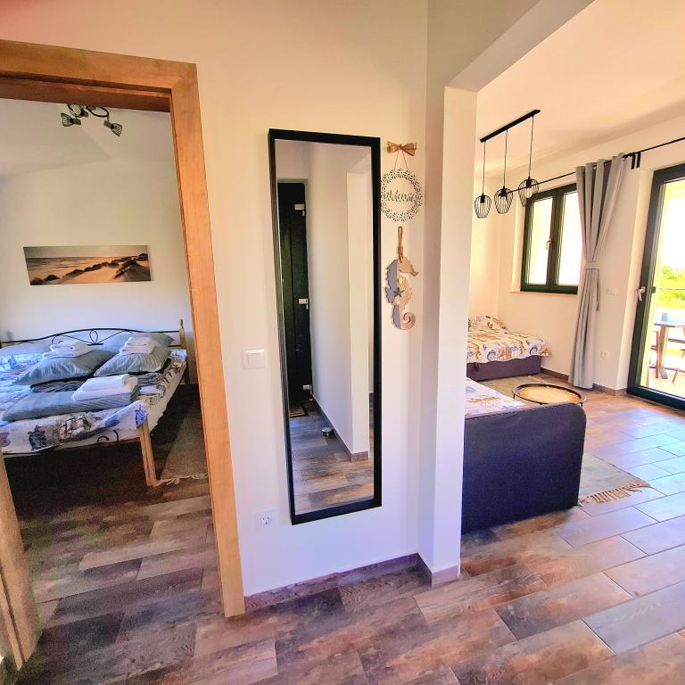 We spent 10 pleasant days with Vesna and Bosko, along with our two children. The apartment is new, clean, spacious, and safe. The hosts were very kind! Seline is a pleasant town with plenty of beaches; the nearest beach is a 10-15-minute walk or a 2-minute drive away. The accommodation is located on the outskirts of Seline, a 10-minute walk from the quiet center. Peace and quiet, with beautiful views. Thank you again for your hospitality and we highly recommend it!