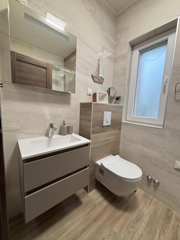 Beautiful new villa by the sea and beach, apartment superbly equipped with modern things and furniture, parking in the yard, everything is within 50 m, pastry shop, restaurants, cafes, promenade, small marina, shops, market.... The terrace of the apartment is the best part, divine moments by the sea, morning coffees in peace and quiet, the smell of pines and the sea, perfect sunsets.....come and experience, words cannot describe it. And all that atmosphere would not be possible without the owners of the villa, Slaven and Mila, a wonderful married couple, perfect hosts. Hospitable above all else, always ready to help, to come forward, they are at the disposal of their guests, whom they value immensely, and upon arrival you already feel that you are welcome. Mila, Slaven, thank you for everything, it was a dream vacation, see you next year!