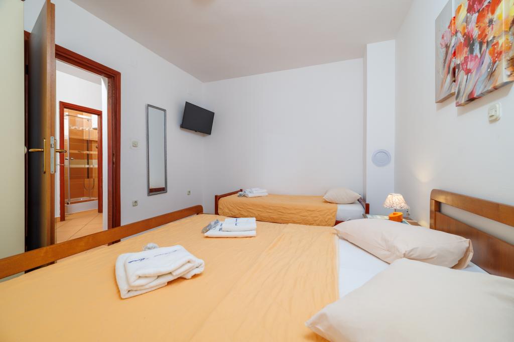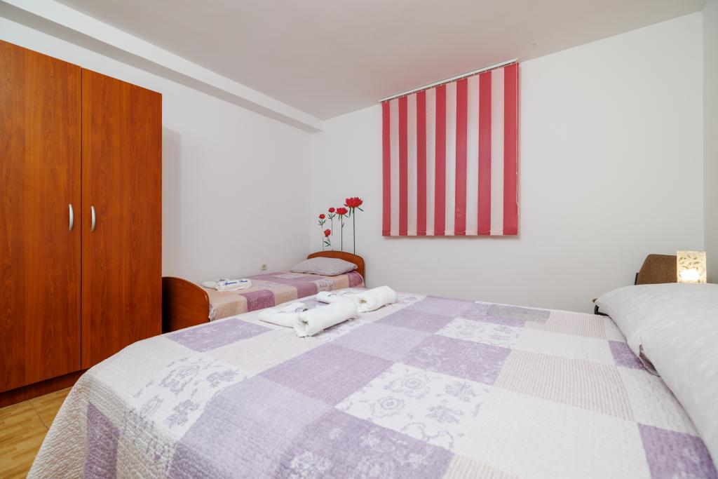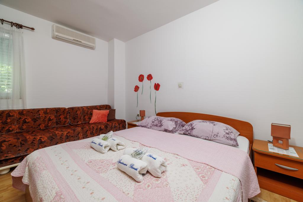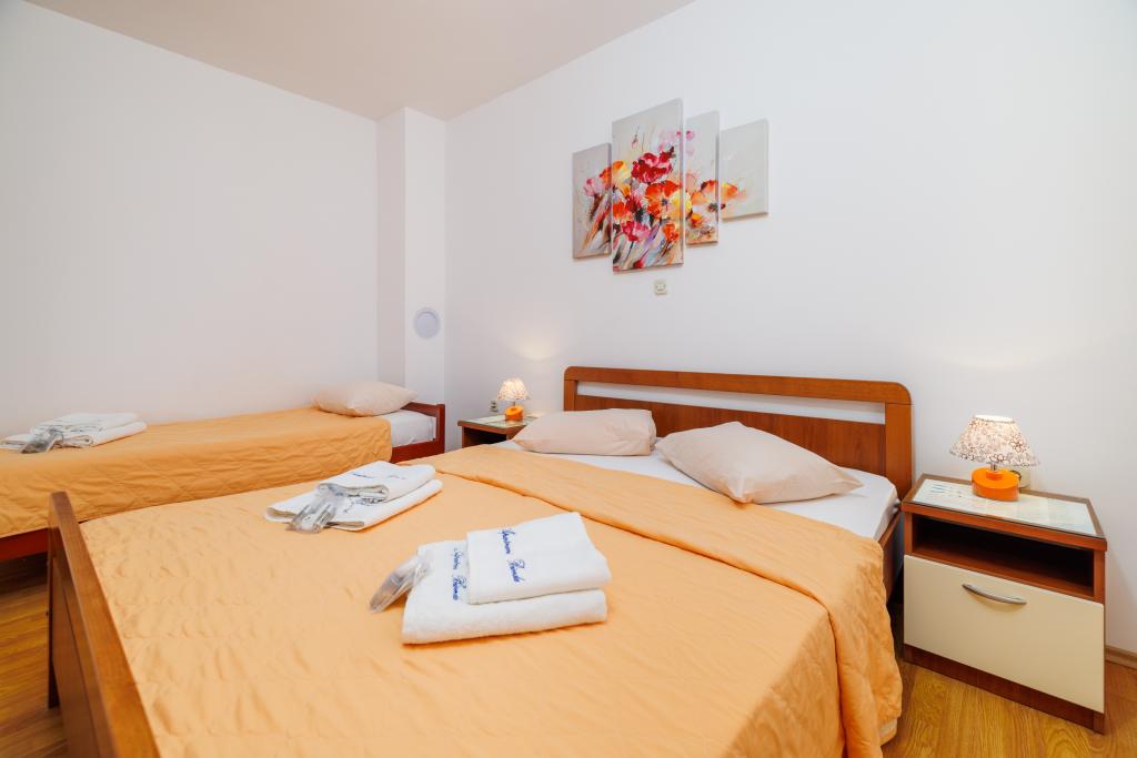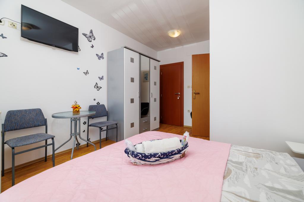 Comfortable rooms, part of the room is a bathroom, balcony, refrigerator. It is located in a very quiet part of the city and only 5 minutes from the beach. It is air conditioned, and parking for the vehicle. The garden has a barbecue and a table with chairs, so that it is possible and dine. Mario and his family are very service and are always there to answer your questions. Thank you for your short but beautiful room. Tina and Tom