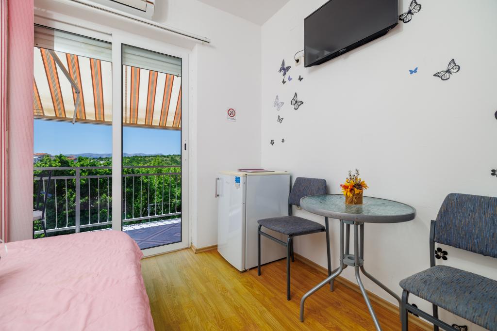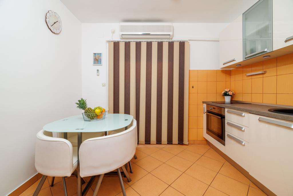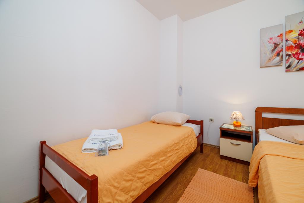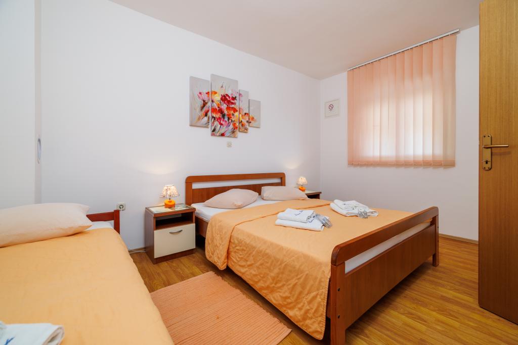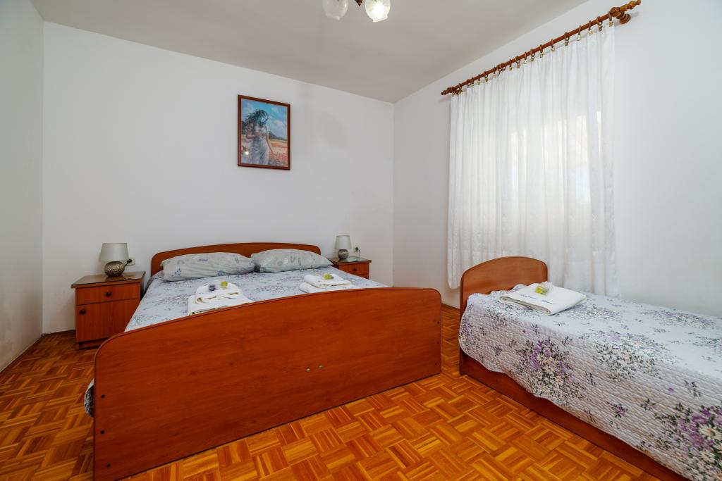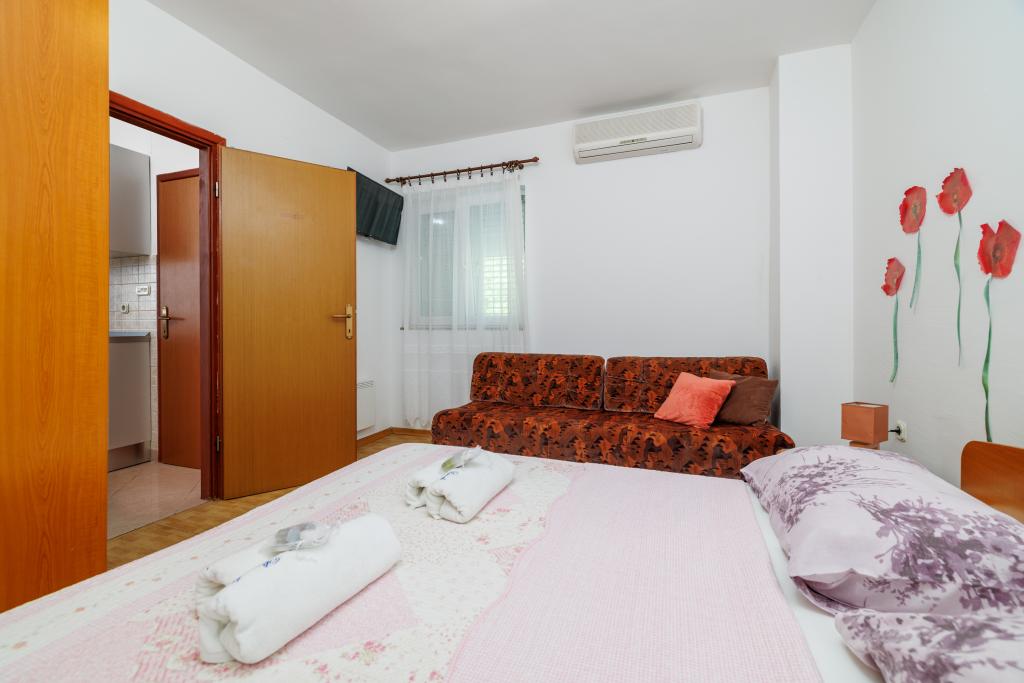 Comfortable rooms, part of the room is a bathroom, balcony, refrigerator. It is located in a very quiet part of the city and only 5 minutes from the beach. It is air conditioned, and parking for the vehicle. The garden has a barbecue and a table with chairs, so that it is possible and dine. Mario and his family are very service and are always there to answer your questions. Thank you for your short but beautiful room. Tina and Tom