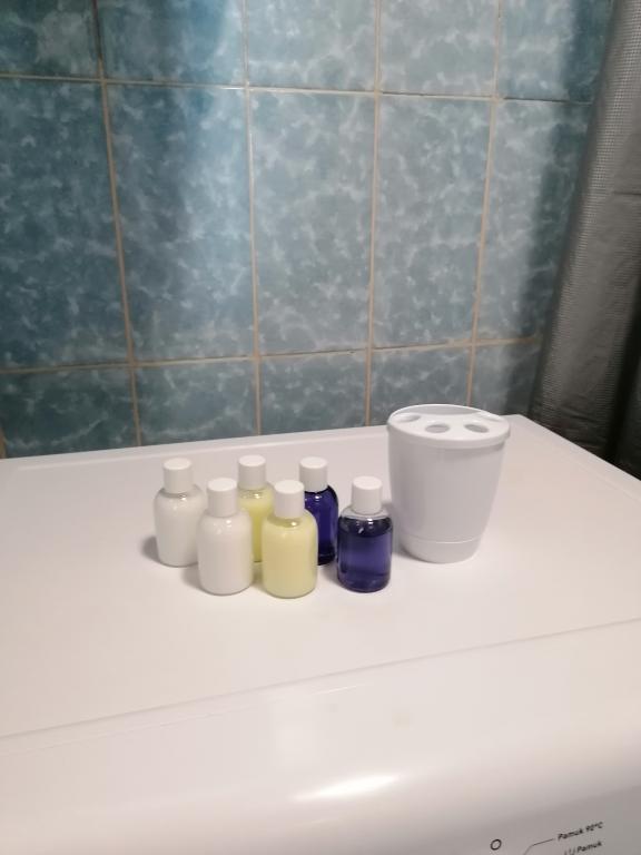 Welcome gift for our guests: Juice, Nesscafee, tea, sticks, banana, shower gel 50ml, hair shampoo 50ml, hair conditioner 50ml. The apartment has clean linen, towels and a hairdryer.