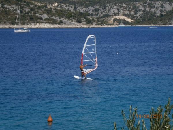 We highly recommend a seat to those who want to spend their vacation in peace amidst the beautiful views. The apartment is very well maintained, clean and well equipped both in the kitchen and other rooms. There is also a barbecue, swing, table and benches outside and two deck chairs in the garden and two deckchairs on the sea + two umbrellas. The owners are very friendly, open and helpful. Guests can also enjoy a surfboard on a permanent localized at sea. The owner did us a great surprise in the form of hour "cruise" around your boat. We enjoyed the stay and heartily recommend it. We will be back and this for two weeks.