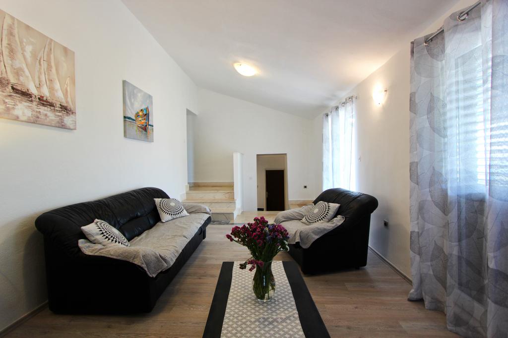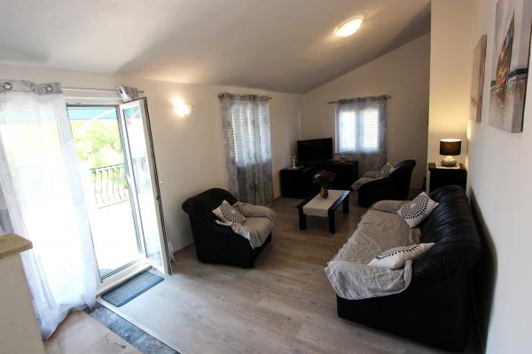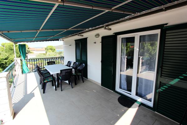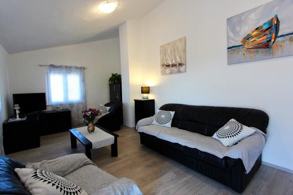 The comfortable \\ Petra \\ apartment is located in the center of the small village of Sevid. Sevid is the right place for vacation, an oasis of peace, beauty and tranquility It will enchant you with the crystal clear sea, untouched nature and many small islands. It is a small tourist place but has everything you need; shop, restaurant and beautiful beaches; rocky and sandy. It is located near Sibenik, Krka National Park (46 km), Split (45 km) and Trogir (16 km), cities that are protected by UNESCO because of their history and beauty, so if you are on vacation in Sevid it is worth a visit them. Apartment Petra is located on an area of 800m2 and includes the use of outdoor spacious space for children with free use of the grill, ideal for two or more families. It has a large terrace of 30 m2 with a beautiful sea view. The price of the apartment includes everything; taxe, free and secure parking, internet use, air conditioning ... The beach is located 30 m from the sea on both sides of the peninsula, ideal for families with children. We wish you a pleasant stay!
