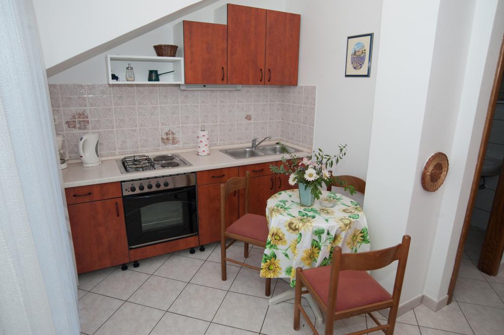 The facility is located on the Mala Oštrica peninsula. The facility has three apartments. One studio apartment (2+1), one two-room (4+1) and a ground floor apartment (2+2) persons. All apartments are modernly equipped. Each apartment has a kitchen, a bedroom and a bathroom with air conditioning, internet connection and TV. The kitchen is equipped with furniture, a coffee maker and a microwave oven. The facility is located a 5-minute walk from a cafe bar and a shop. The beach is 40 m from the facility on one side and 55 m on the other. All apartments have terraces. Within the facility there is an outdoor shower and a barbecue for guests. Each apartment has a parking space for a car.