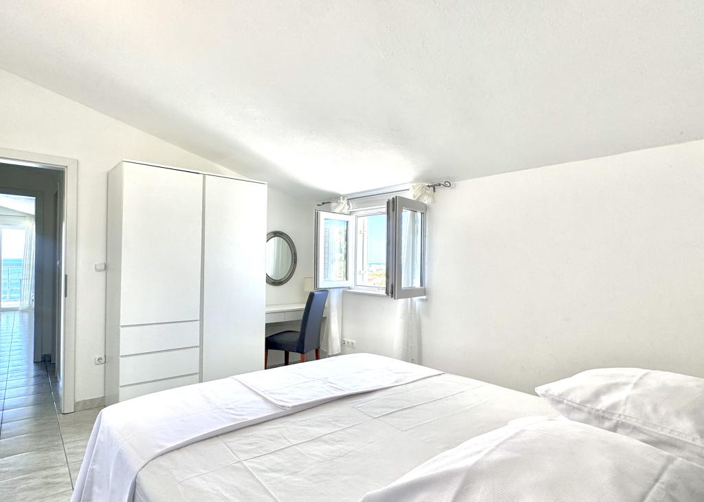 Fantastic view from the balcony, the sea is about 100m away. Crystal clear water, especially in the morning. The apartment is more than good for the price, everything you need is there. And if something is missing, the owner Ivana will get it straight away. In our apartment the refrigerator was a bit small, the freezer compartment is tiny. Still a full 5 stars, we like the rest very much.