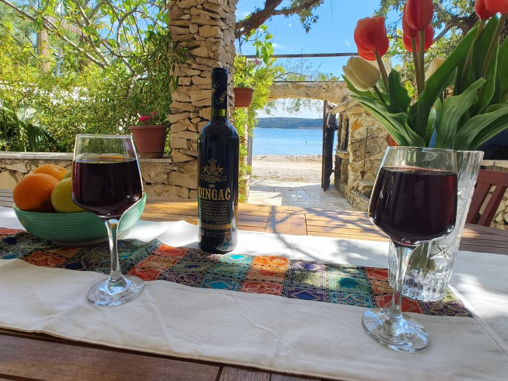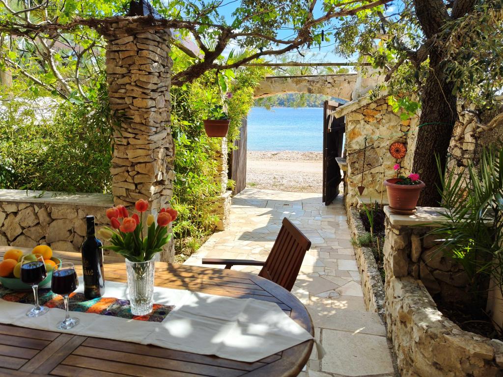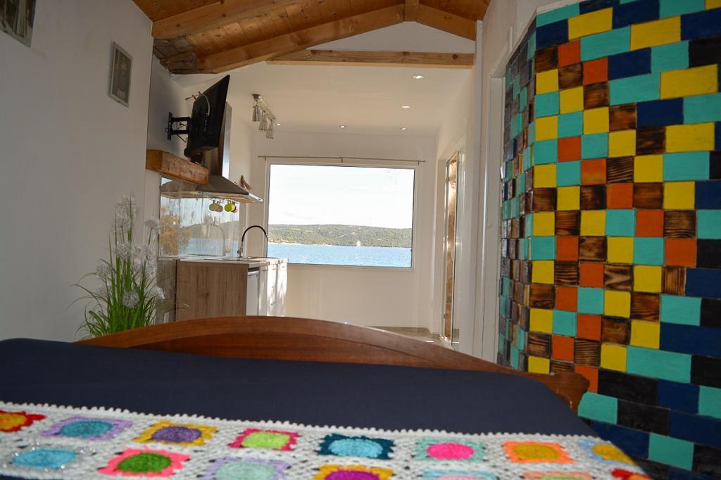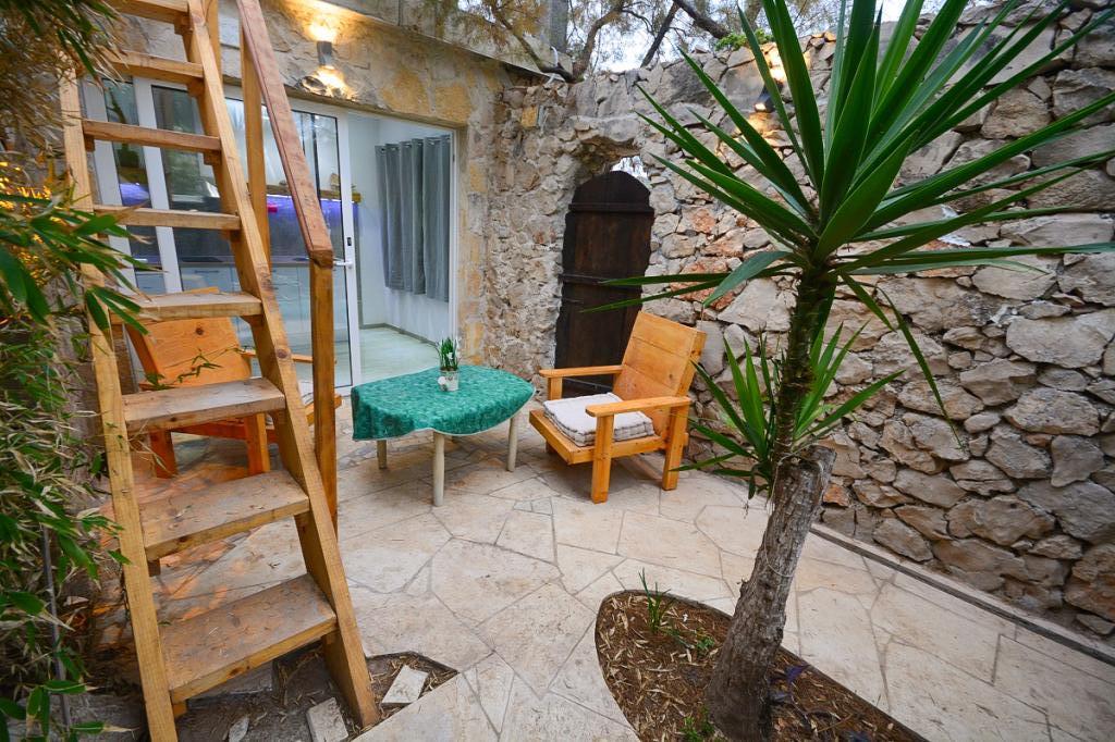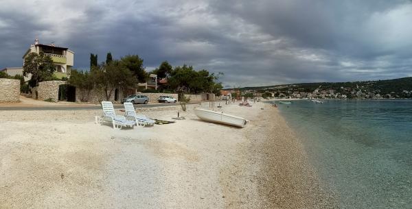 Three completely separate apartments with separate entrances, first row to the sea, just a few meters away from the most beautiful crystal clear sea on the Adriatic, Intimate atmosphere with figs, olive trees and shade, bamboo, surrounded by stone walls, covered courtyard protected from sun and rain, private deckchairs and umbrella, private grill for each apartment, kitchen, crockery, TV, air conditioning, close to shops, boat and pedal boat rental... Access to the crystal clear sea, especially good for children and the elderly. Free Wi-Fi, free sunbeds and umbrellas, each apartment has a stone grill, air conditioning, ... We offer you complete comfort. An ideal place for complete refreshment and rest. Close to shops, restaurants. Not far from your accommodation are the main attractions, the national park with the Krka waterfall, Trogir, Split, Sibenik, Primosten... Access to persons who are not registered in the apartment is strictly prohibited. Prohibited parties.