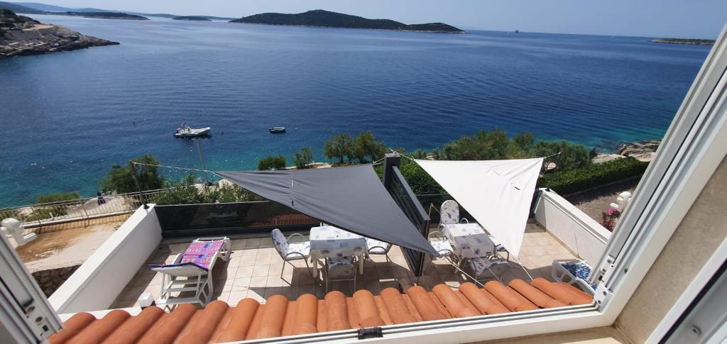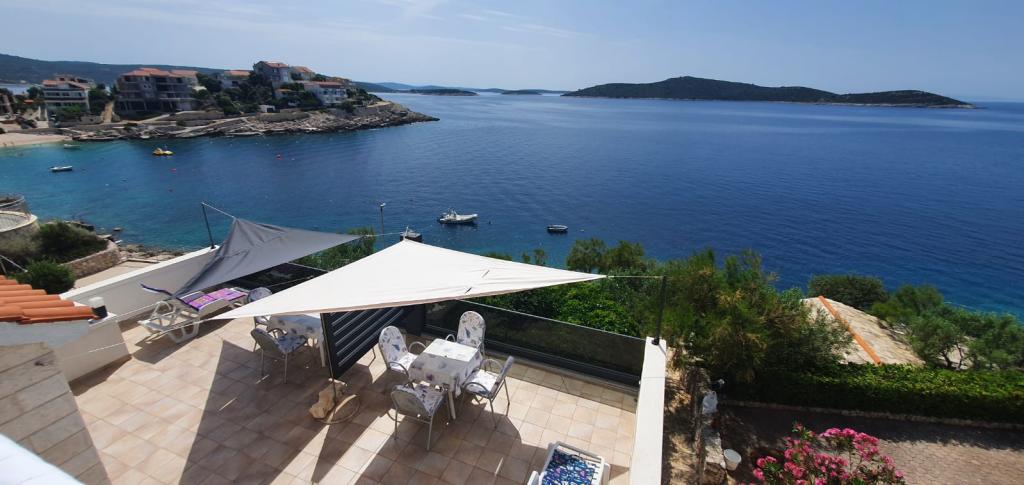 We have been coming to Sevid for 6 years always happy in this great apartment complex. It offers everything you need for a relaxing holiday. The view from the terrace to the sea is spectacular. The apartments are clean and equipped with everything you need. Internet as well as WiFi are available. A small staircase leads directly to the sea. There are also several berths created by the host family. These can be covered with a canvas as needed. The hosts Ivan and Spomenka are great hosts and always helpful. We never had communication difficulties because Spomenka speaks very good English. We will be back next year and look forward to it. Thank you Ivan and Spomenka.