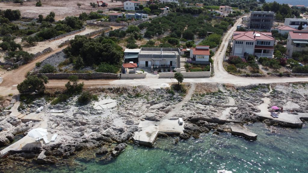 There is a gazebo, grill, parking, sunbeds, umbrellas, boat mooring3. W