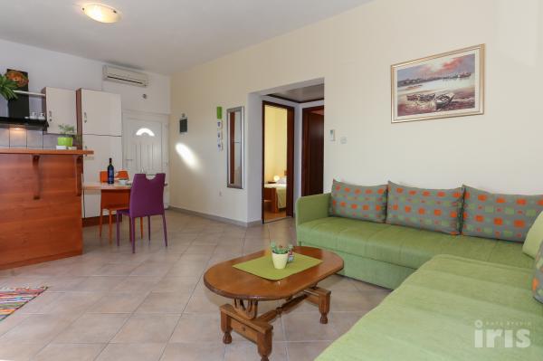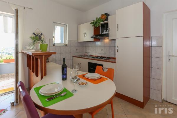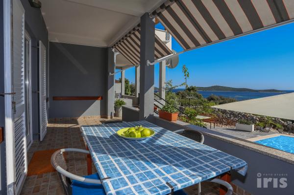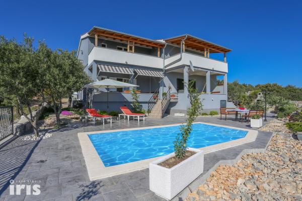 Vacation Vuksic is located in a beautiful part of the Dalmatian coast, in the heart of Primoštenske-Trogir Riviera, in Sevid. Sevid has managed to preserve the authenticity and charm of a small village and will enchant you with its untouched nature, bays scattered along the clear sea. Sevid has everything you need: a restaurant, cafe, shop. From Split is 40 km, 12 km from Trogir, cities that will delight you, whose history and attractions have contributed to become a part of UNESCO's World Heritage List. Vuksic House is located in a quiet location, about 300 meters away from the sea and is the perfect choice for families, young people and for all those looking for a relaxing Mediterranean holiday. The house has a beautiful terrace with a barbecue where you can sit and enjoy meals, relax with a glass of wine. There is a pool that offers refreshment during hot summer days, where you can spend time reclining in deck chairs and enjoy the Mediterranean sun. The apartments are rented together and are ideal for groups of 8 - 12 persons.