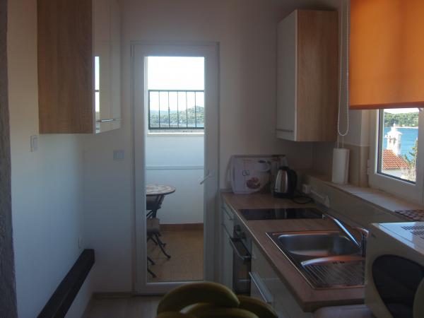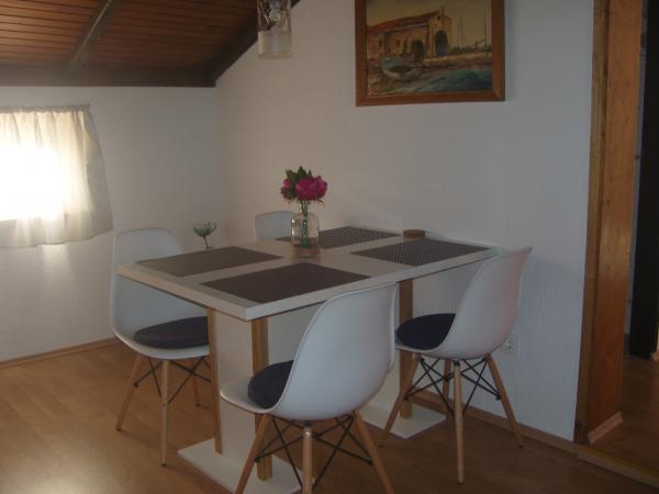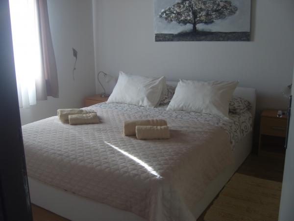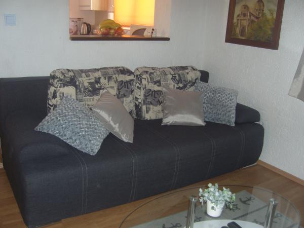 Equipped air-conditioned apartment with parking space in the garage. Door width 2.50 a height 2meters. It's six feet long. Distance to the beach and the old town is 5 min. Best for 2 people but there is a sofa in the living room for 2 people. The price goes to WiFi and everything listed. The apartment is located in the attic with a beautiful view.