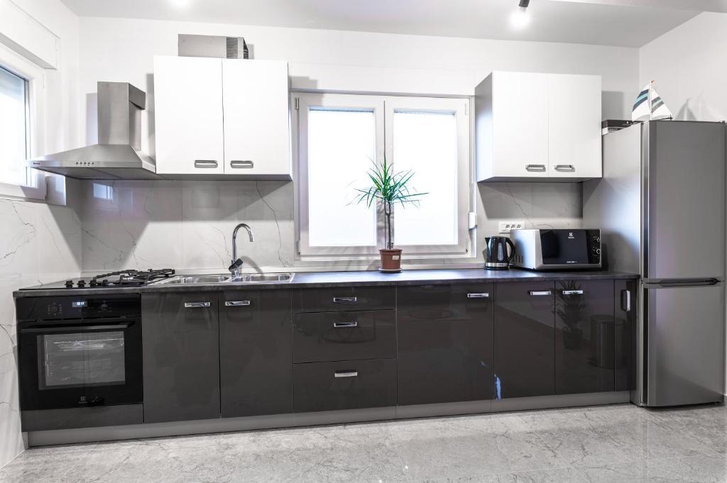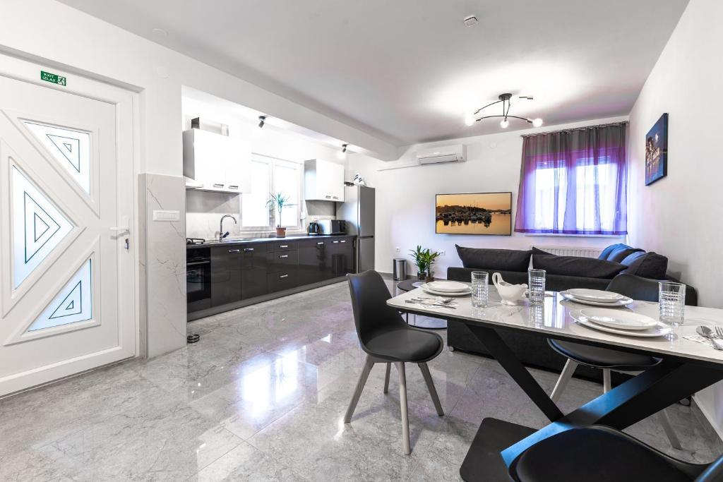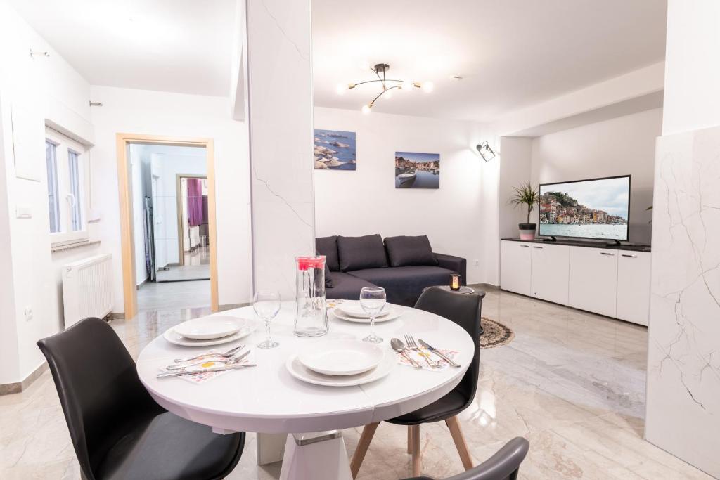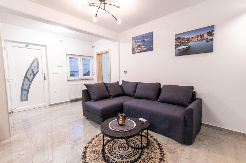 We offer you three 4-star apartments, superbly equipped and newly furnished apartments, in a quiet family neighborhood of Šibenik, ideal for families and guests who want a peaceful, safe environment where they can relax knowing that they and their property are safe. At the location, we provide you with our free private parking, which is right behind the building, hidden from the view of the street and which you can see from the apartment. The apartment is located a 20-minute walk from the Old Town of Šibenik and in the immediate vicinity of all city facilities. The sea is 500 meters away, and the nearest beaches are only a 5-minute drive away. Each apartment is fully furnished and equipped with all facilities, and each has access to a terrace, a balcony, and an outdoor oven for grilling and baking.