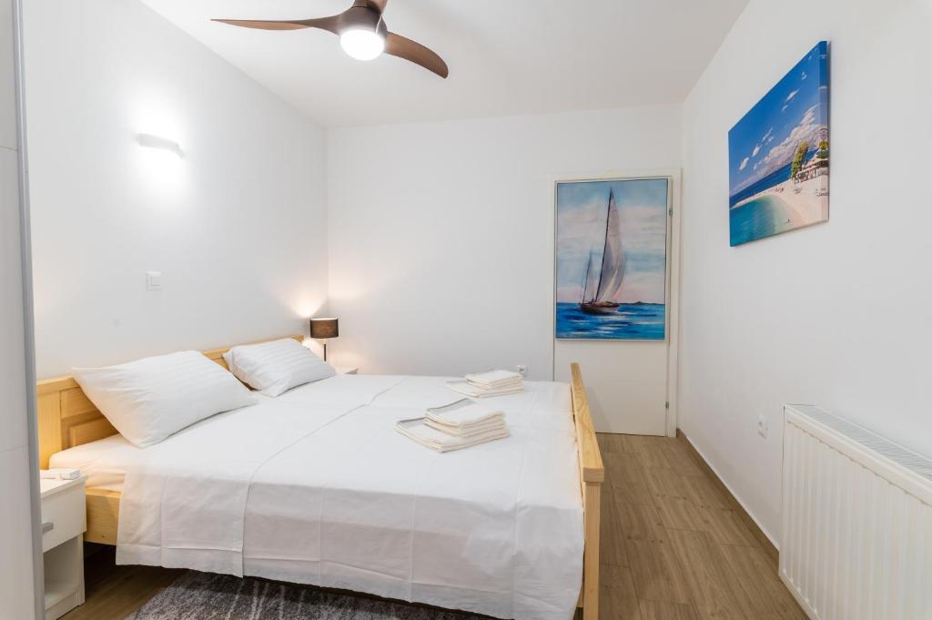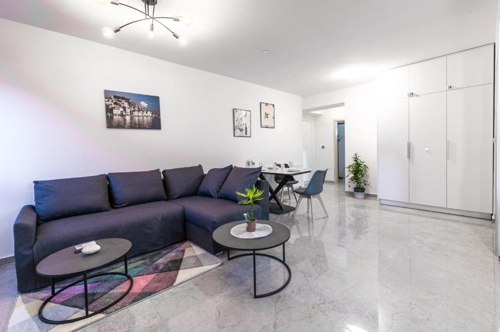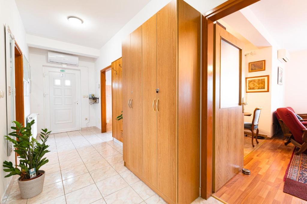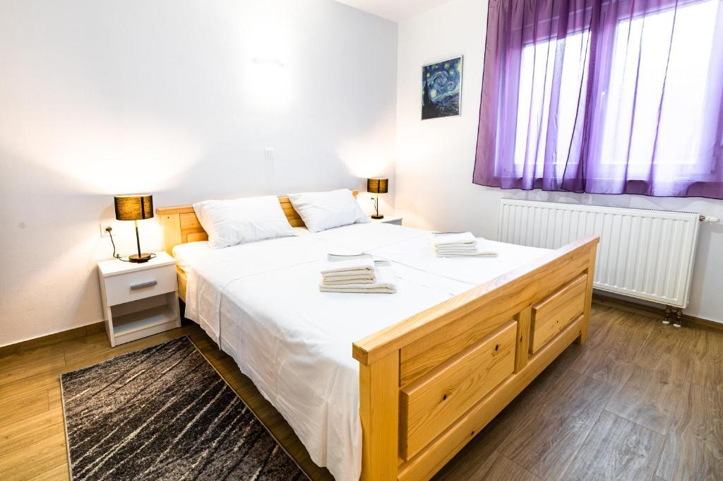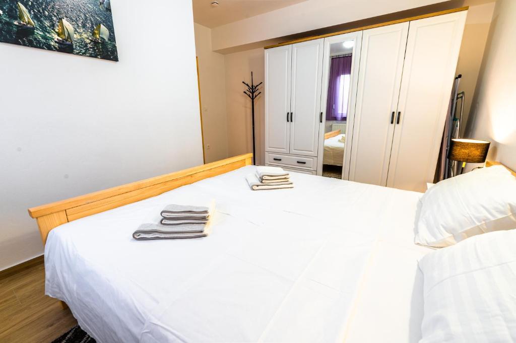 We offer you three 4-star apartments, superbly equipped and newly furnished apartments, in a quiet family neighborhood of Šibenik, ideal for families and guests who want a peaceful, safe environment where they can relax knowing that they and their property are safe. At the location, we provide you with our free private parking, which is right behind the building, hidden from the view of the street and which you can see from the apartment. The apartment is located a 20-minute walk from the Old Town of Šibenik and in the immediate vicinity of all city facilities. The sea is 500 meters away, and the nearest beaches are only a 5-minute drive away. Each apartment is fully furnished and equipped with all facilities, and each has access to a terrace, a balcony, and an outdoor oven for grilling and baking.