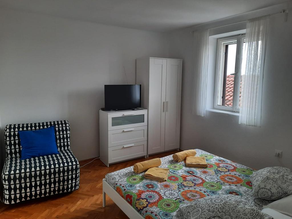 Charming newly renovated apartment in a quiet street of the old town of Šibenik, near the fortress of St. Michael. The amenities of the old town (sights, restaurants, shops) are a 5-minute walk away. Mihovil Fortress is a 2-minute walk away (150m), Šibenik Cathedral is a 3-minute walk away (250m), and the city parking is a 3-minute walk away (250m). Banj city beach is a 13-minute walk away (1 km). The bus station is an 8-minute walk away (700 m).