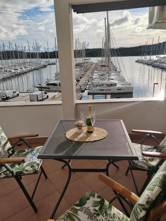 The house is located on the Mandalina peninsula in Šibenik with a view of the sea (yacht marina). With two bedrooms, two bathrooms, living room, dining room with kitchen and terrace with outdoor shower. 5 minutes drive to the city center and supermarket, 10 minutes drive to the first beach.